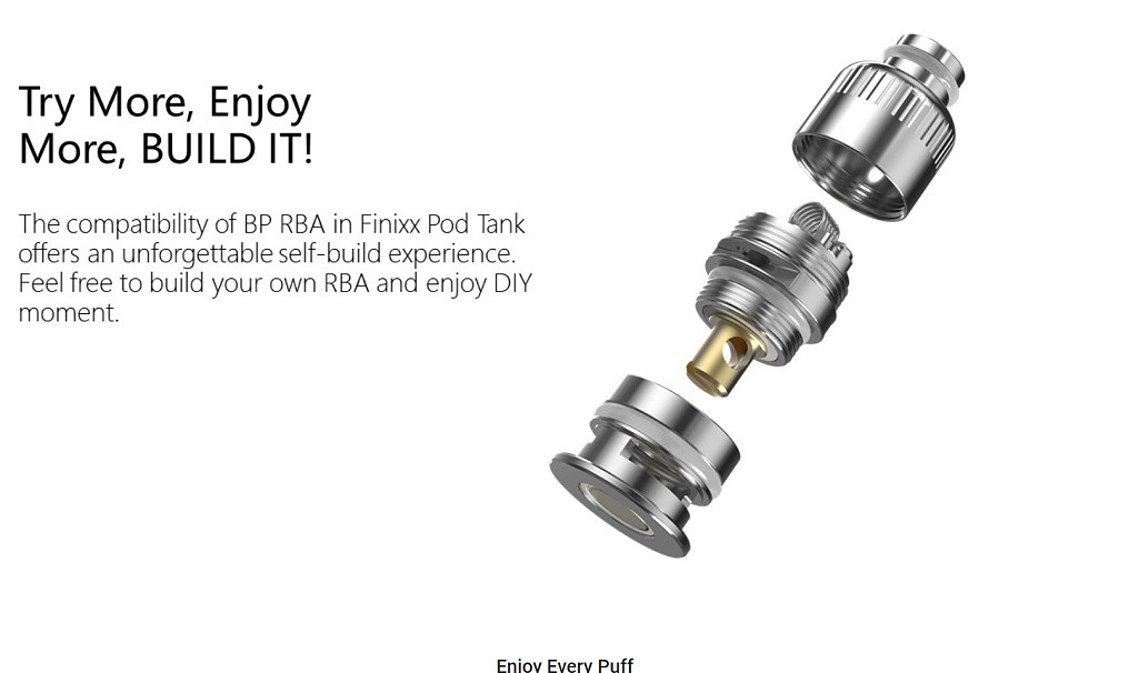 Clearomizér je tepelně odolný a mód nabízí stabilní a bezpečný výkon pro MTL i DL vapování, díky inovacím je mnohem odolnější i teplotně stabilnější. Tank lze používat se všemi žhavícími hlavami ze série BP. Samozřejmostí je i možnost výměny driptipu. Disponuje závitem 510 díky tomu ji lze použít s jakýmkoliv modem obsahující také závit 510. V nejspodnější části naleznete oblíbenou otočnou regulaci přívodu vzduchu, tak jak ji znáte z předchozích modelů či jiných tanků.
