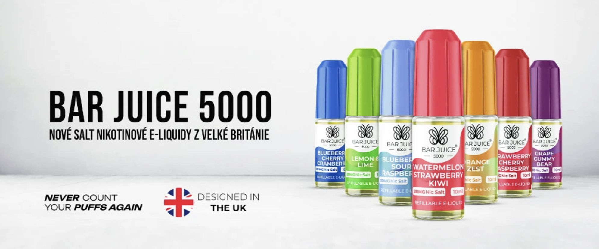 Bar Juice 5000 představuje nejprodávanější řadu e-liquidů s nikotinovou solí ve Velké Británii, inspirovanou chutěmi populárních jednorázových elektronických cigaret. Každá 10ml lahvička obsahuje 20mg/ml nikotinové soli a je vyrobena zkušenými profesionály z prémiových surovin pro nepřekonatelnou chuť a konzistenci. S vyváženým poměrem VG/PG 50/50 a formulí Nic.Salt poskytují tyto e-liquidy jemný vdech a rychlý nikotinový hit, ideální pro MTL vapování. Dostupné ve třech silných koncentracích – 5mg, 10mg a 20mg, nabízejí více než 40 autentických chutí od oblíbených jako Watermelon, Blue Razz Lemonade až po různé exotické kombinace. Náplně Bar Juice 5000 jsou vyráběny ve Velké Británii pod přísnou kontrolou kvality, což zaručuje konzistentní kvalitu a chuť. Díky bezpečnostním uzávěrům odolným proti dětem a ekologickému přístupu představuje levnější a udržitelnější alternativu k jednorázovým elektronickým cigaretám. Jedná se o perfektní volbu pro vapery, kteří hledají autentickou chuť jednorázových zařízení v opakovaně použitelném formátu s možností výběru síly nikotinu podle individuálních potřeb.