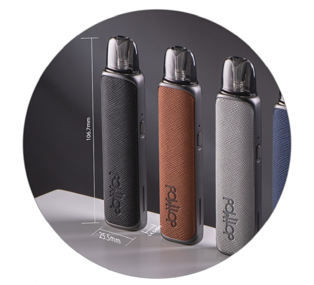 ![]() | Parametry produktu: Rozměry: 106,7 x 25,5 x 14,5 mm Způsob potahování: MTL (klasické šlukování) Metody spínání potahu: automatické Kapacita baterie: 800 mAh Výstupní výkon: max 18 W (automaticky dle cartridge) Odpor cartridgí v balení: 0,8 Ω / 1,0 Ω Objem cartridgí v balení: 2 ml Dobíjení: USB-C port Materiál: zinková slitina + kůže + PCTG |