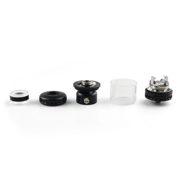 Design je klasicky agresivní a mohutný. Tomu pomáhá průměr 28mm, díky kterému se veškeré části atomizéru musely vyztužit a zpevnit, což má za následek neskutečnou váhu okolo 80g. To dělá z Blotto Max opravdického giganta. Kapacitu e-liquidu 3,8ml si můžete snadno rozšířit, jelikož v balení sady najdete i obrovské bubble sklíčko v provedení čirém, nebo PCTG. To Blotto Max zvětší na neskutečných 6,2ml a vy si můžete užívat ničím nerušený vaping.