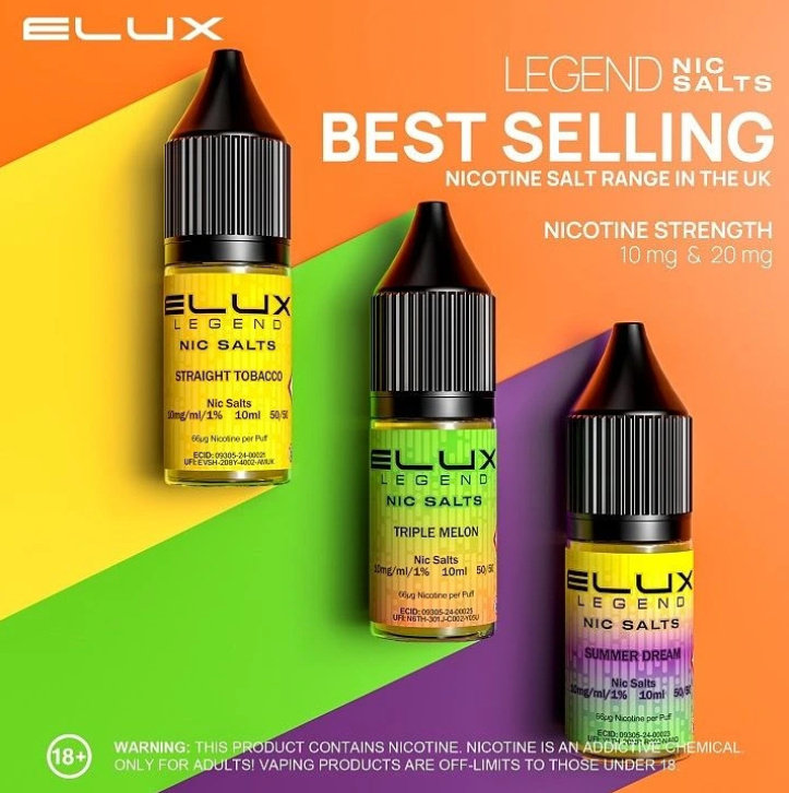 Hlavní předností náplní do elektronických cigaret značky Elux Legend Salt je to, že obsahují dnes velmi oblíbenou nikotinovou sůl (Nic.Salt) a jejich vynikajícího podání chuti, což přináší ještě větší požitek z vapování. Každá příchuť Elux Legend je pečlivě propracovávána do posledního detailu, dokud nedosáhne požadované kvality a věrnosti. Oproti běžnému nikotinu u klasických e-liquidů nabízí náplně s nikotinovou solí hned několik výhod. Zatímco klasické e-liquidy mají silnější hit, který vám brání v inhalaci většího množství nikotinu, nikotinové soli dávají při stejné síle nikotinu mnohem slabší hit. V jednom potahu je tak možné do těla dostat větší dávku nikotinu, která bude pocitově podobná klasickým cigaretám. Odpadá tak nutnost nepřetržitého potahování e-cigarety a i s menšími pod systémy je možné bez problému uspokojit touhu po nikotinu.