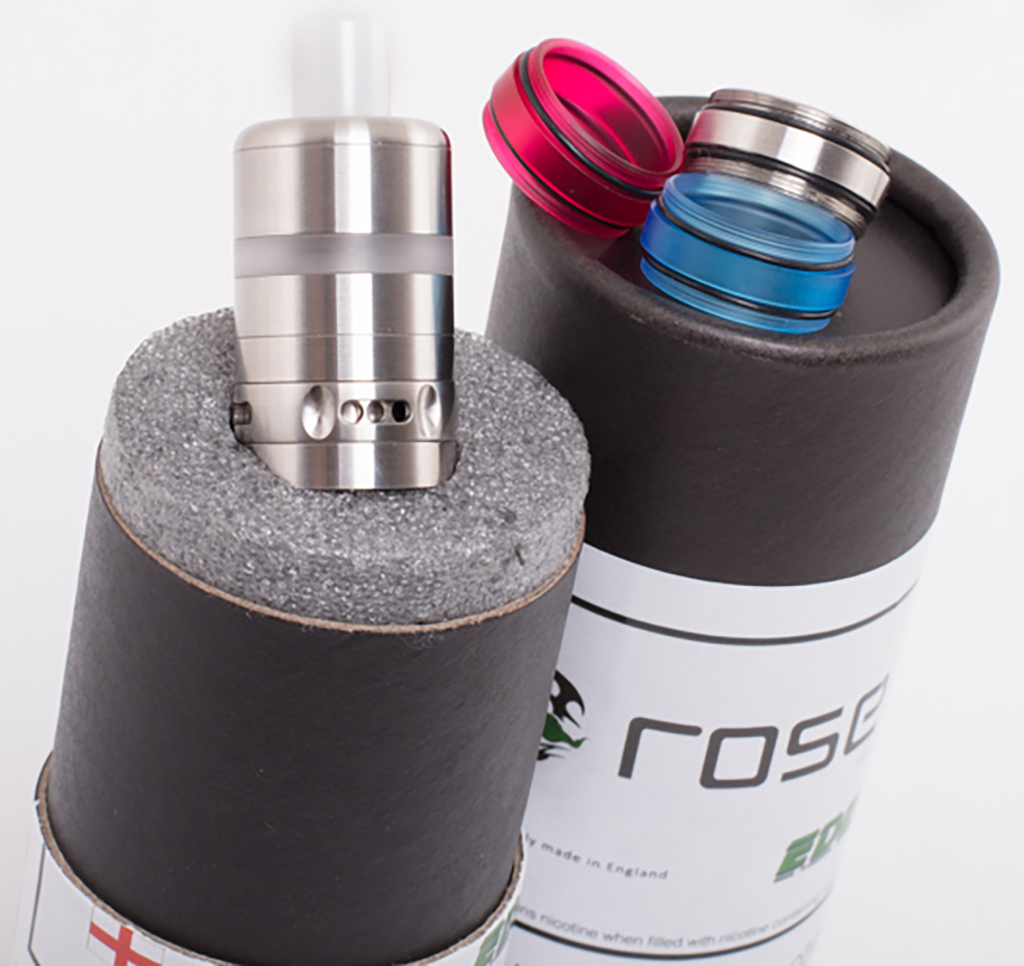 Rose V3 je vyroben z kvalitní nerezové oceli 316 a jeho tank pojme 2ml liquidu, který může být plněn buď vrchem, nebo spodem.