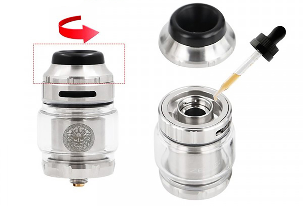 Pohodlné vrchní plnění prošlo modernizací a nově se snadněji plní bez rizika protečení e-liquidu okolo plnícího otvoru. Kapacita RTA tatomizéru Zeus X činí 4,5ml e-liquidu.