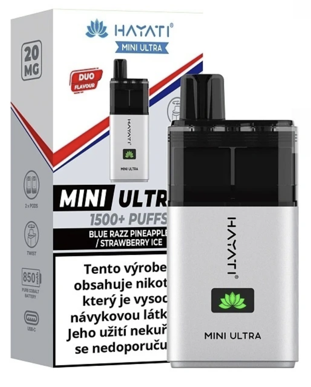 Hayati Mini Ultra představuje pokročilou elektronickou cigaretu s revolučním duálním systémem Pod Cartridgí, která umožňuje uživatelům přepínat mezi dvěma různými chutěmi pomocí jednoduchého otočení náustku o 180 stupňů. Tato inovativní funkce činí z tohoto kompaktního zařízení jedinečný produkt na trhu elektronických cigaret.