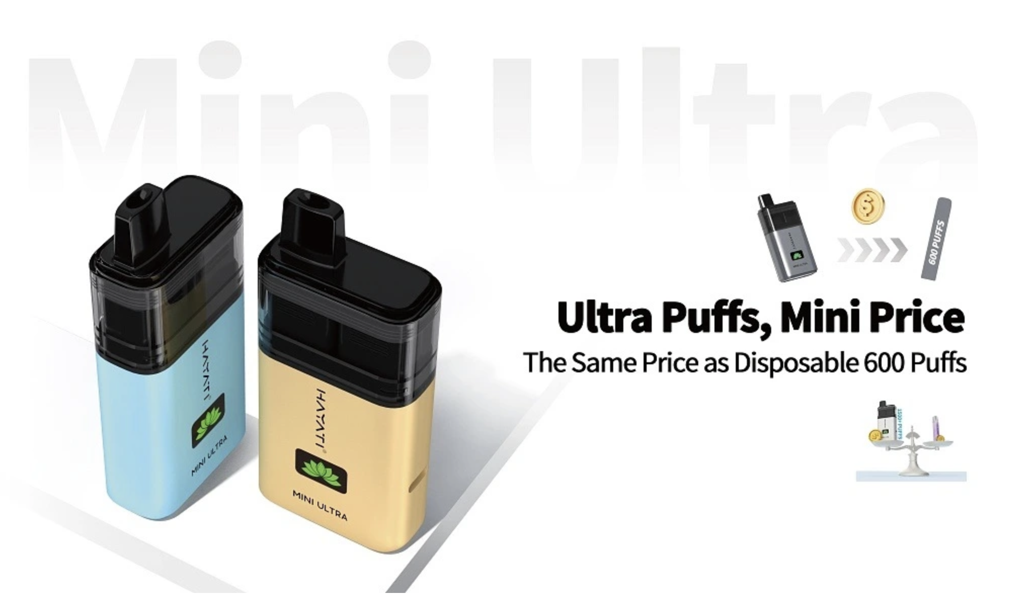 Hayati Mini Ultra se řadí mezi cenově nejefektivnější duální chuťové vape zařízení na trhu, kombinující prémiovou kvalitu s dostupnou cenou. Balení obsahuje jedno vape zařízení, uživatelskou příručku s bezpečnostními pokyny a dva přednaplněné pody (v závislosti na verzi buďto se stejnou příchutí, nebo kombinace dvou příchutí. Díky své kompaktní velikosti a výkonné baterii je Hayati Mini Ultra ideální volbou jak pro začátečníky, tak pro zkušené vapery, kteří hledají spolehlivé, dlouhotrvající a přenosné řešení pro celý den. Zařízení je navrženo tak, aby napodobovalo pocit tradičního kouření, což z něj činí perfektní volbu pro bývalé kuřáky. Unikátní duální systém příchutí tak umožňuje uživatelům objevovat různé kombinace chutí během jednoho dne bez nutnosti nosit více zařízení.