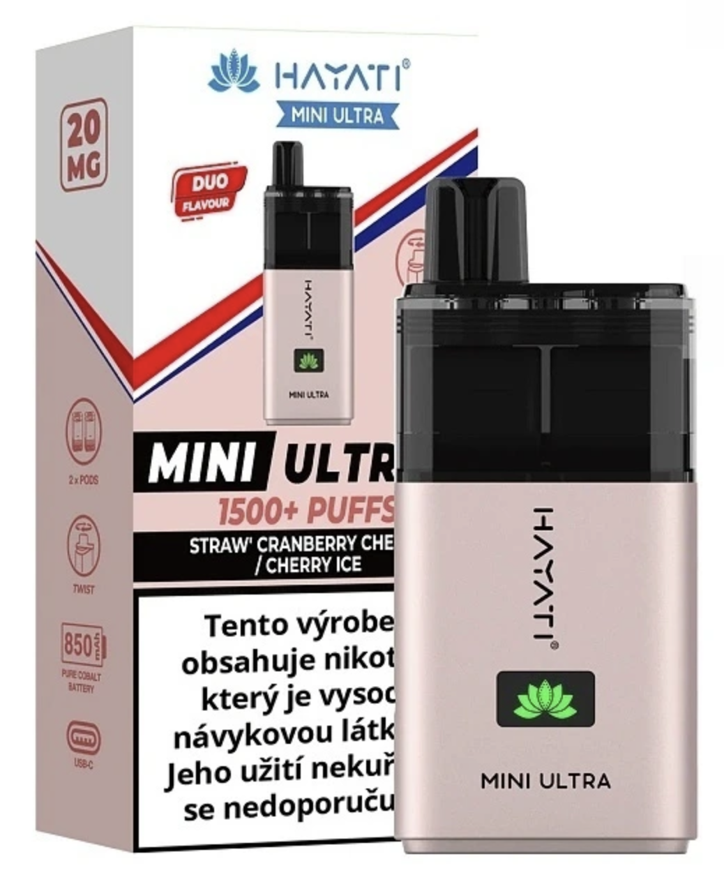 Hayati Mini Ultra představuje pokročilou elektronickou cigaretu s revolučním duálním systémem Pod Cartridgí, která umožňuje uživatelům přepínat mezi dvěma různými chutěmi pomocí jednoduchého otočení náustku o 180 stupňů. Tato inovativní funkce činí z tohoto kompaktního zařízení jedinečný produkt na trhu elektronických cigaret.