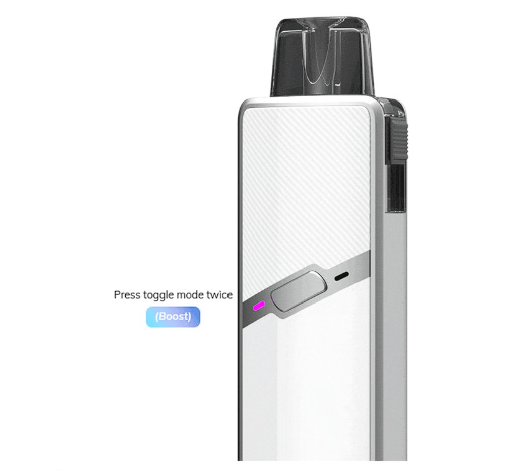 ![]() | Parametry produktu: Rozměry: 104.3 x 27.93 x 17.62 mm Kapacita baterie: 1400 mAh Způsob potahování: MTL (klasické šlukování) & RDL (utažené přímé potahování) Metody spínání potahu: automatické & manuální Objem cartridge: 3 ml Výstupní napětí: 2.65 – 3.40 V Výstupní režimy: Normal / Boost Výstupní výkon: automaticky dle tělíska Materiál: zinková slitina + PCTG Dobíjení: USB-C port (5V / 800mA) Tento výrobek není určen pro náplně obsahující nikotin. |