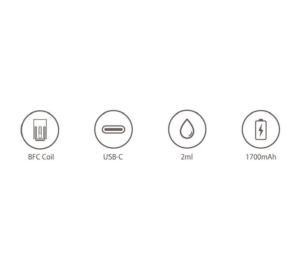 Parametry produktu: Délka: 123 mm Průměr: 19 mm Způsob potahování: MTL (klasické šlukování) Metody spínání potahu: manuální Kapacita baterie: 1700 mAh Výstupní výkon: automatický dle tělíska Výstupní napětí: konstantní Objem tanku: 2 ml Odpor tělíska v balení: 0,8 Ω (mesh) Podporovaný odpor: 0,5 – 1,5 Ω Dobíjení: USB-C port (5V / 1A) |