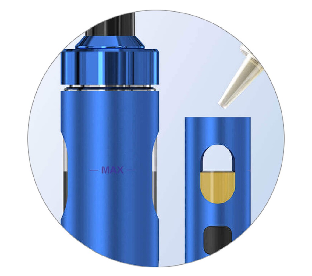 Tradiční metoda plnění Ani u druhé generace nesmí chybět populární systém vrchního plnění. Tank s celkovým objemem 2 ml tak hravě doplníte během pár vteřin. Pro účely plnění je e-cigareta opatřena praktickou ryskou MAX v boční části, díky které můžete neustále hlídat maximální hladinu, aby nedošlo k přeplnění zásobníku na e-liquid. |