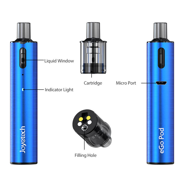 E-cigareta využívá výměnné eGo POD cartridge s vertikální spirálkou o odporu 1,2 Ohm. Kapacita činí příjemných 2 ml vašeho oblíbeného e-liquidu a obsahují integrovaný náustek, který podporuje pohodový MTL projev. Kromě klasických e-liquidů podporují cartridge eGo POD i moderní NicSalt náplně.