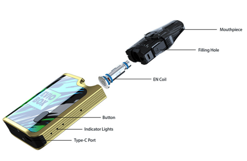 Samozřejmostí modelu Joyetech EVIO Box je přítomnost hned dvou typů spínání potahu. Pro sepnutí žhavení tak můžete využít tradiční tlačítko, které se nachází v boční části. Používat však můžete také automatický spínač potahu, který se aktivuje přiložením úst k náustku a potažením. Sami si tak zvolíte, jaká z metod vám bude vyhovovat více.