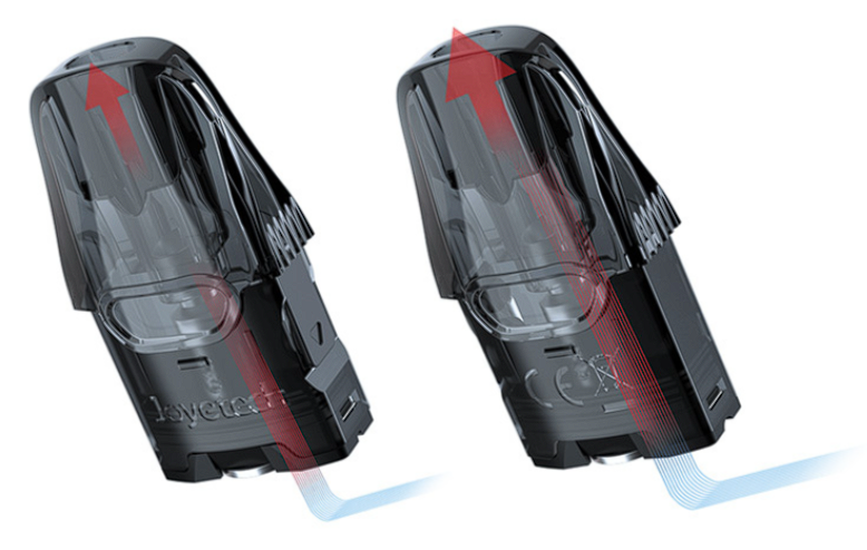 Novinkou jsou speciální cartridge Joyetech EVIO s dvojitým systémem airflow. Umístěním cartridge na tělo baterie jedním ze dvou směrů ovlivníte výslednou tuhost potahu. Sami si tak zvolíte, zda vám vyhovuje spíše utaženější, nebo vzdušnější varianta MTL potahu. Volba je čistě ve vašich rukou.