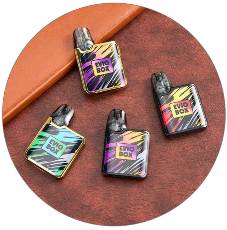 Joyetech EVIO Box Pod Kit přichází hned ve dvou konstrukcích těla. K dispozici je šest barevných variant v těle vyrobeném ze zinkové slitiny s hmotností 80 g. Čtyři základní barevné varianty potom nabídnou odlehčenější konstrukci z odolného polykarbonátu a hmotností 41,5 g. Na výběr je tedy velké množství variací. Obě varianty snadno schováte do kapsy díky kompaktním rozměrům.