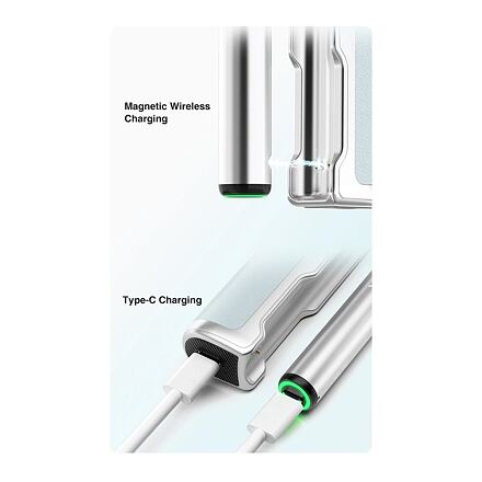Pro ještě větší komfort během užívání nabídne model Thelema Nexus hned dva způsoby nabíjení integrované baterie uvnitř e-cigarety. Můžete ji tak komfortně nacvaknout na powerbanku a dobíjet prostřednictvím magnetického kontaktu, nebo můžete připojit USB-C kabel k portu ve spodní části e-cigarety a dobít ji tradičním způsobem pomocí vlastního síťového adaptéru.