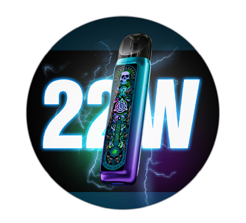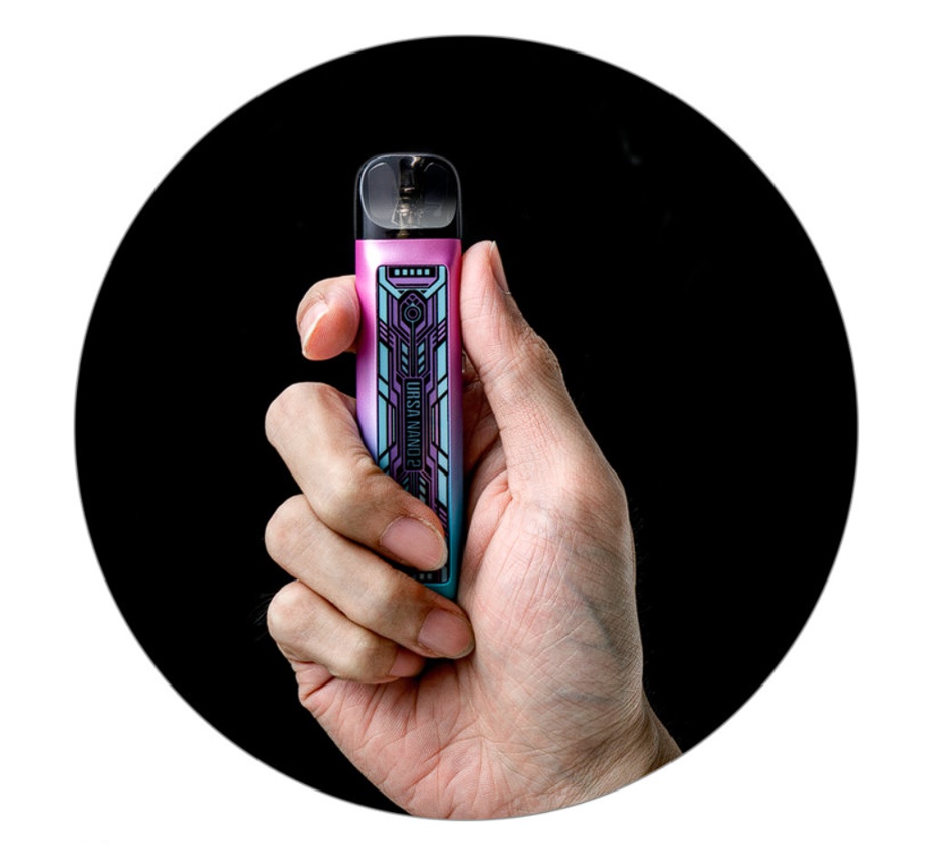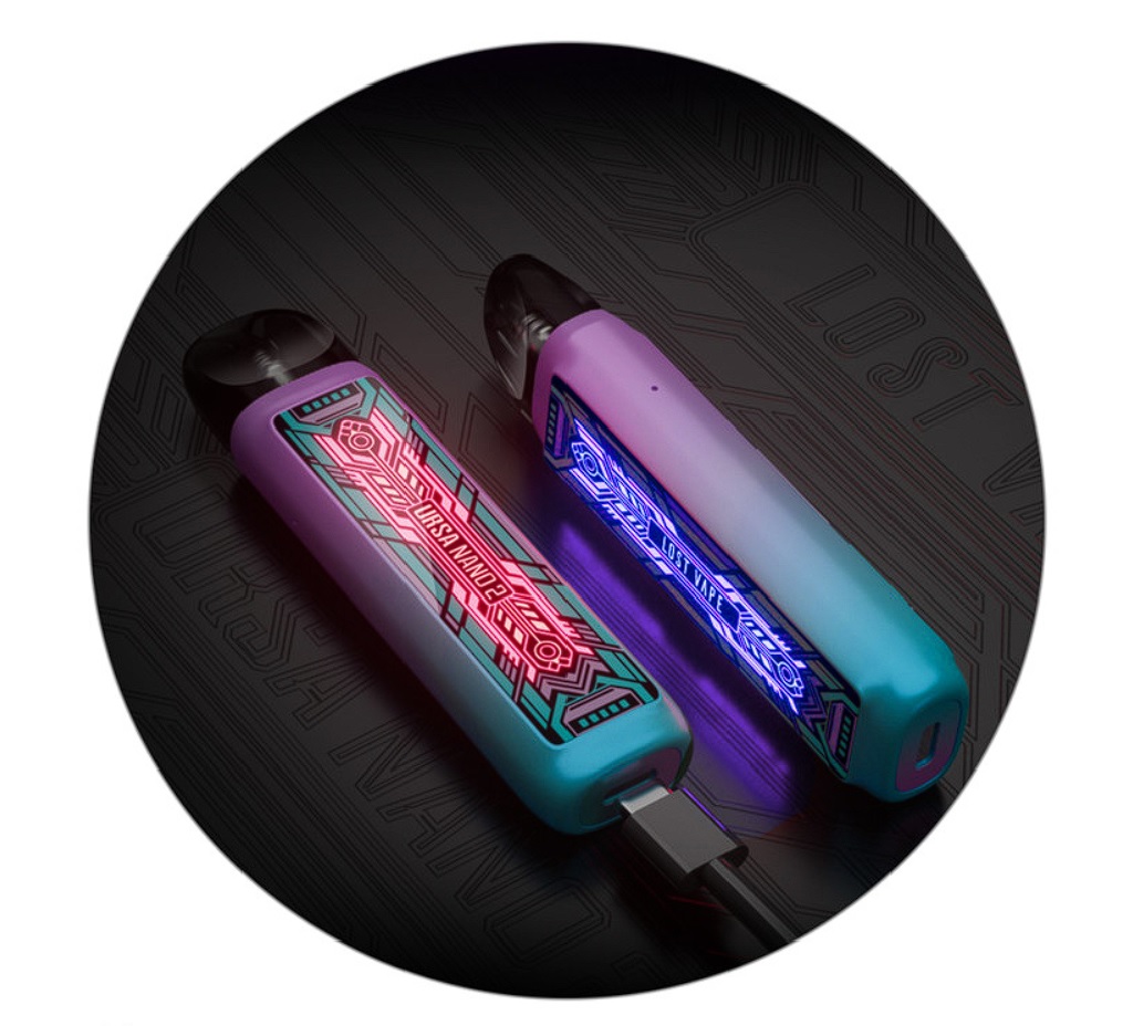 Druhá generace oblíbeného pod systému od výrobce Lost Vape s názvem Ursa Nano 2 Pod Kit se představuje s unikátním a promyšleným designem a s řadou skvělých vlastností pro každodenní využití. Nesmí chybět ani vynikající elektronika, nebo podpora cartridgí z platformy Ursa pro co nejlepší výsledky při vapování. Podlouhlá konstrukce zařízení nabídne praktické rozměry 83,7 x 25,5 x 16,05 mm. Konstrukce ze zinkové slitiny se také může pyšnit nízkou hmotností 85 g. Zadní panel zdobí stylový motiv se zářivými efekty a odlesky při náklonu e-cigarety. Tento motiv je navíc podsvícený a dodává celé e-cigaretě nezaměnitelný vzhled. V jádru se nachází integrovaná baterie s obrovskou kapacitou 900 mAh pro mnohahodinový a intenzivní provoz. V případě potřeby budete moci baterii dobíjet pomocí portu USB-C na těle.