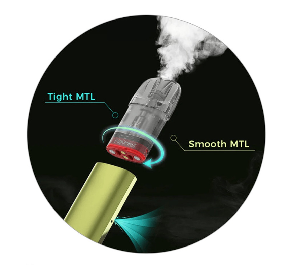 ![]() | Dvě varianty tuhosti Model Nevoks APX S1 Pod nabídne hned dvě varianty tuhosti během potahování. Cartridge můžete na tělo umístit jedním ze dvou směrů, přičemž každý směr nabídne odlišnou tuhost potahu. E-cigareta tak dokáže oslovit jak příznivce volnějšího MTL, tak také milovníky velmi tuhého MTL vapingu. |