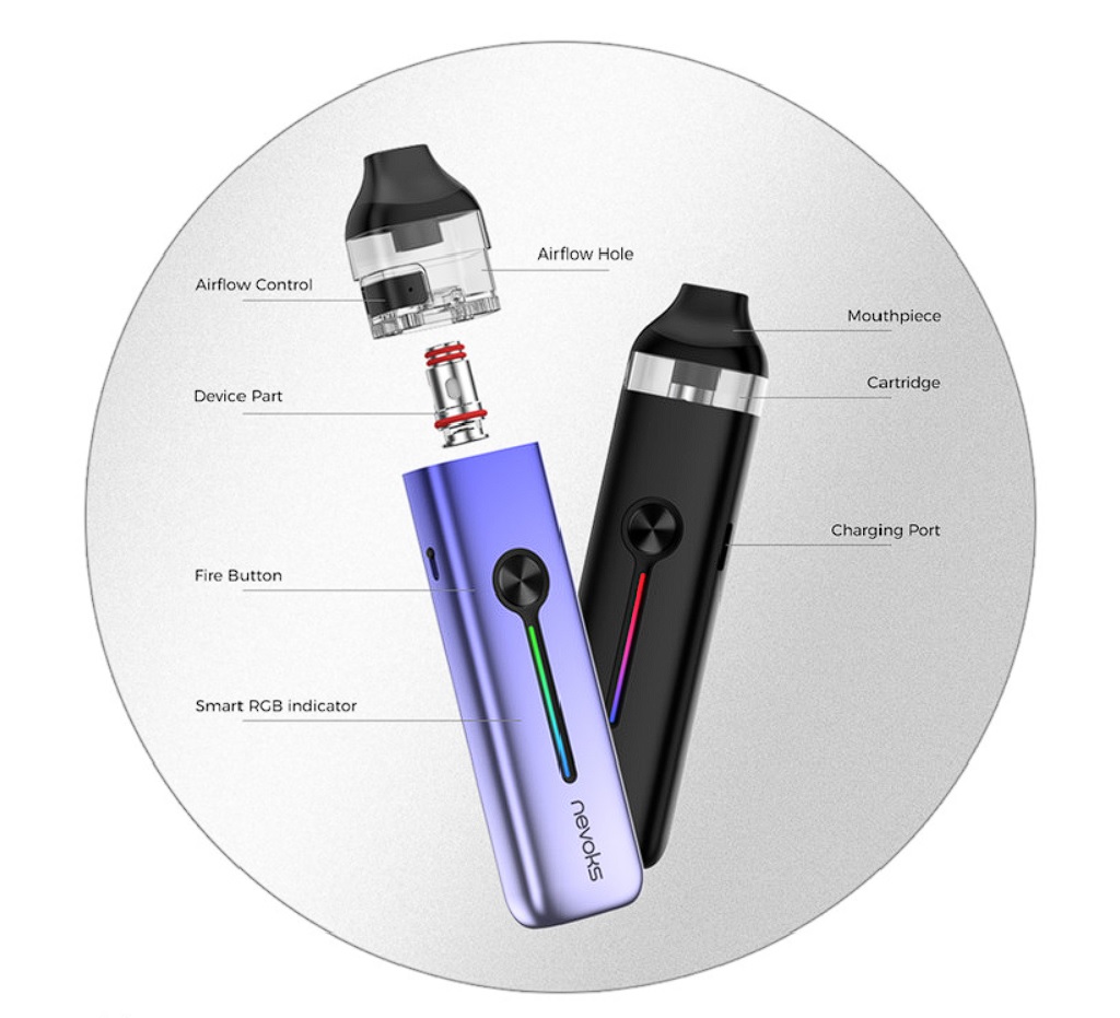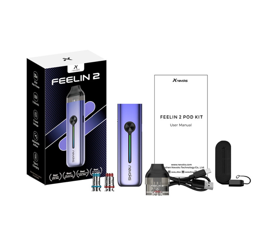 Nevoks Feelin 2 Pod Kit je špičkový pod systém s nádherným designovým zpracováním, podporou hlav z platformy Nevoks SPL 10 a několika zajímavými funkcemi, díky čemuž dokáže oslovit drtivou většinu vaperů. Konstrukce zařízení z hliníkové slitiny přináší nízkou hmotnost 45 g a zaoblené hrany s praktickými rozměry celého těla 105 x 25 x 15 mm. Díky svému tvaru se perfektně drží v dlani a používání si tak budete doslova užívat. Její tělo je poháněno integrovanou baterií se solidní kapacitou 1100 mAh, která hravě zvládne také intenzivnější používání a vyšší výkon. Na předním panelu se nachází přehledný LED indikační pásek, který vás bude neustále informovat o aktuálním stavu baterie a zároveň dodá e-cigaretě futuristické vzezření. Baterii je možné dobíjet prostřednictvím portu USB-C s podporou nabíjení až 2A.