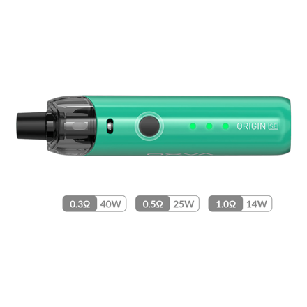 OXVA Origin SE Pod Kit disponuje v jádru inteligentním čipsetem Photon, který se postará o co nejsnazší nastavení celého zařízení. K dispozici tak máte tři intenzity výkonu, mezi kterými přepínáte pomocí spínacího tlačítka. S každou intenzitou se potom mění také výsledný výkon dle aktuálního odporu tělíska nainstalovaného uvnitř cartridge. Díky tomu tak dodá zařízení vždy naprosto optimální výkon přesně podle vašich preferencí a potřeb.