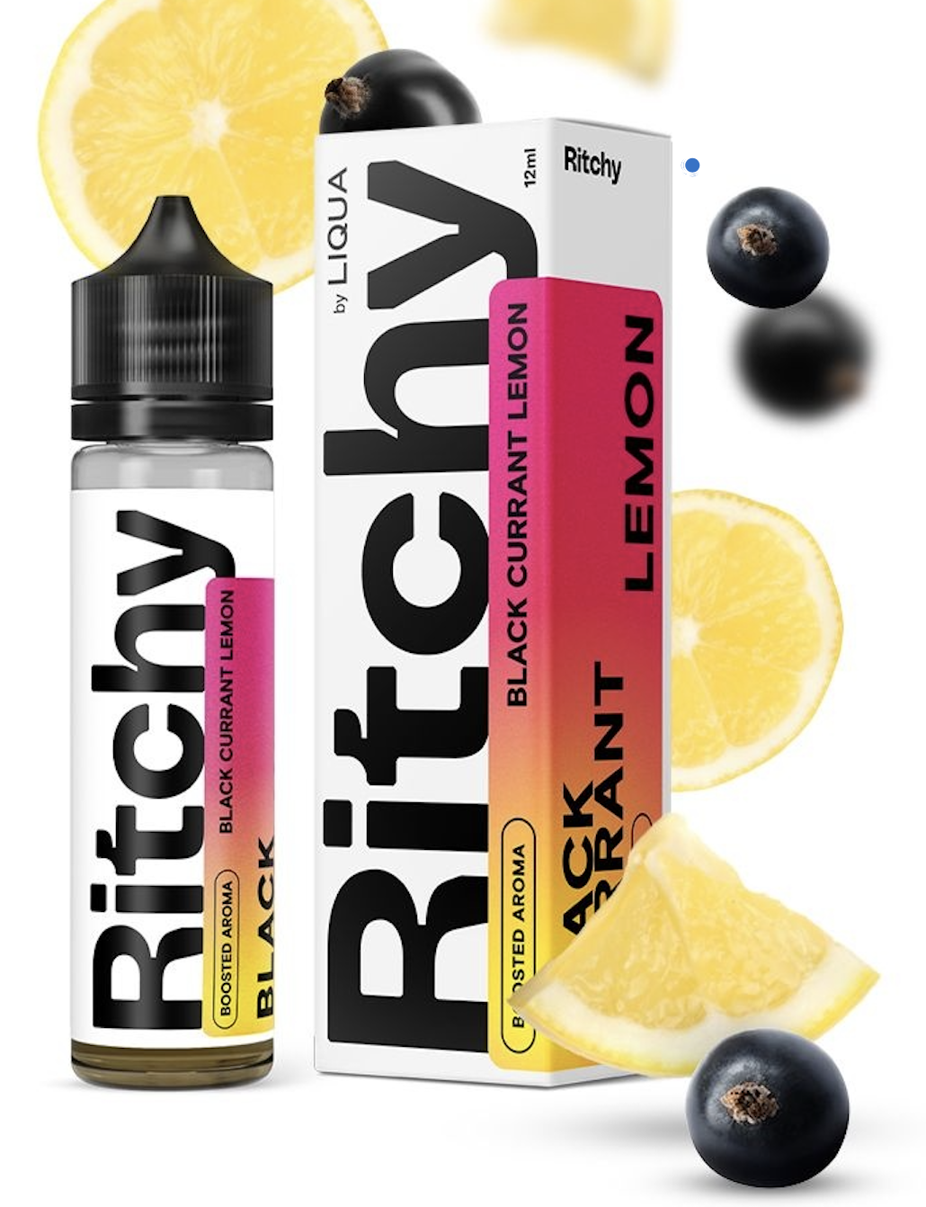 Příchutě Ritchy S&V od evropské společnosti Liqua nabídnou výraznější aroma a skutečně prémiový zážitek při každém potáhnutí. Vychutnejte si tyto jedinečné ovocné směsi a zamilujte se do jejich výrazné, bohaté, plné a nezaměnitelné chuti. Všechny příchutě Ritchy by Liqua jsou vyrobeny na území EU a splňují všechna kritéria pro uvedení na trh. Jsou vyrobeny jen z těch nejkvalitnějších surovin pro vynikající chuťové podání. Příchutě Ritchy jsou dodávány ve velké 60ml lahvičce, ve které se nachází 12ml příchutě. Díky systému shake & vape stačí pouze dolít bázi a začít potahovat bez potřeby zrání.