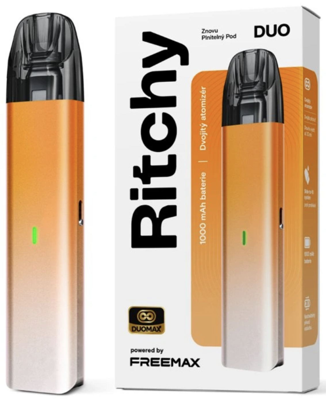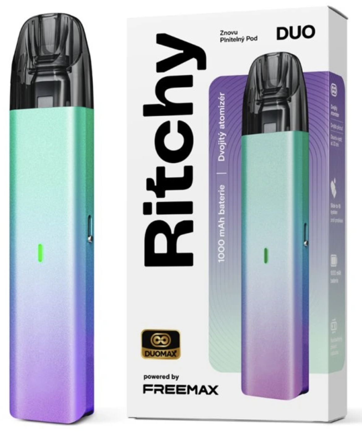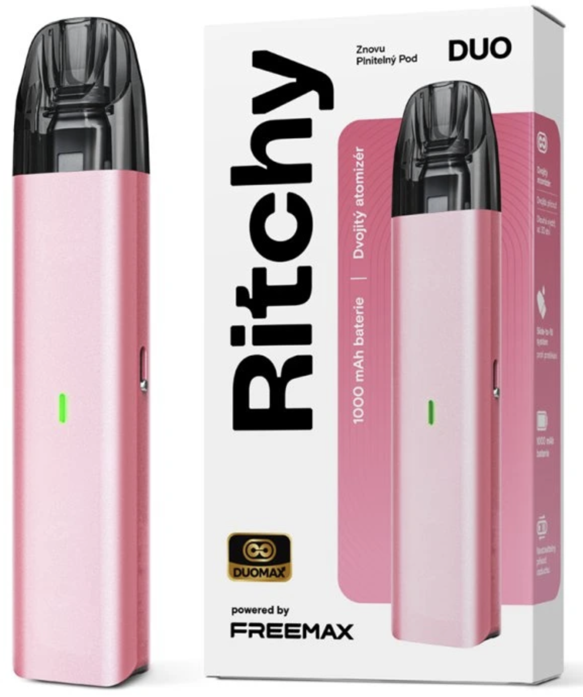 Ritchy DUO POD Kit – inovativní pod systém s technologii DUOMAX Parallel Double Mesh, který nabízí až o tři sta procent intenzivnější odpařování e-liquidu.