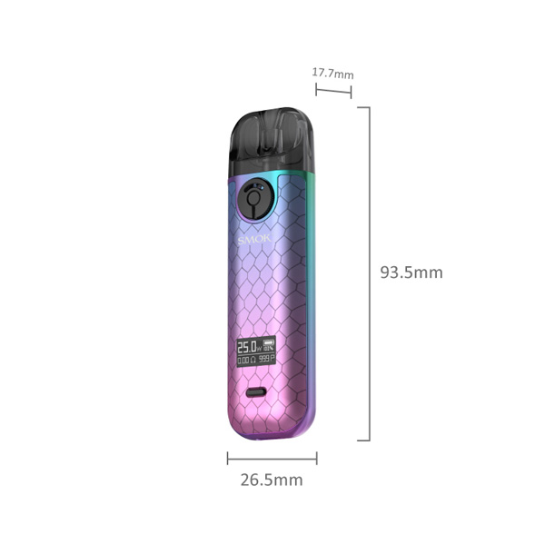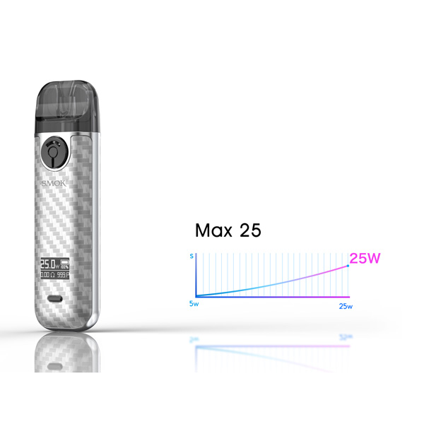 Navzdory miniaturním rozměrům obsahuje SMOK NOVO 4 integrovanou baterii o kapacitě 800mAh s moderním USB-C nabíjecím portem. Maximální výkon činí solidních 25W a o stavu baterie, nastaveném výkonu či počtu potahů vás bude informovat OLED displej s dobře čitelným fontem.