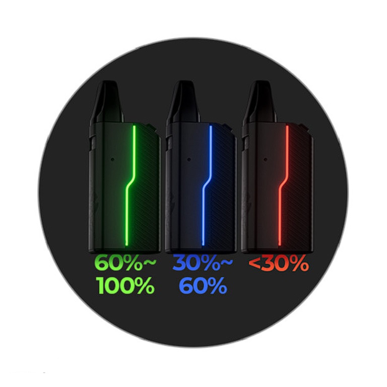 Stylová LED indikace V boční části modelu GZ2 se nachází moderně zpracovaná LED indikace, která vás během potahu neustále informuje o aktuálním stavu baterie. Při potahování navíc dioda svítí v moderní Tron animaci, díky čemuž dodá celé e-cigaretě ještě futurističtější design. Dioda nabídne hned tři barvy pro snadné ověření, na kolik procent máte přibližně nabito. | ![]() |