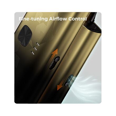 V boční části se nachází tradiční manuální regulace airflow, která umožní pohodlné nastavení tuhosti potahování. Vše zvládnete nastavit jednoduchým pohybem prstu a doslova za pár vteřin. Airflow regulace umožní dostatečně pohodlné nastavení proudění vzduchu pro všechny typy cartridgí Crown S.