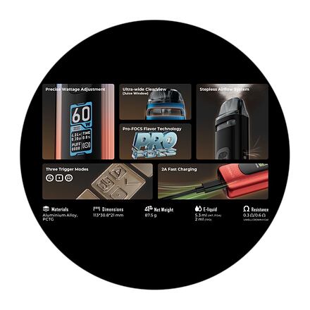 Zážitek, který vás pohltí. Celému zařízení dominuje krásně přehledný a velký TFT displej, pomocí kterého si budete moci hravě nastavit všechny potřebné hodnoty. Díky velké úhlopříčce jsou všechny parametry a hodnoty krásně čitelné, s nastavením tak nebude mít problém žádný vaper.