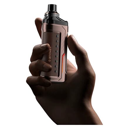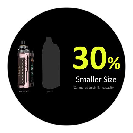Luxusně zpracovaný pod mod Armour G se pyšní bytelnou kovovou konstrukcí a krásně zpracovanými koženými panely. Nabídne také perfektní ergonomii pro pohodlné držení v dlani během používání. Zadní zaoblená část krásně kopíruje vaši dlaň a vapování vás tak bude doslova bavit. Oproti jiným pod modům s podobnými vlastnostmi navíc nabídne až o 30% menší konstrukci, celkové rozměry se zastavily na krásných 113 x 38 x 28 mm.