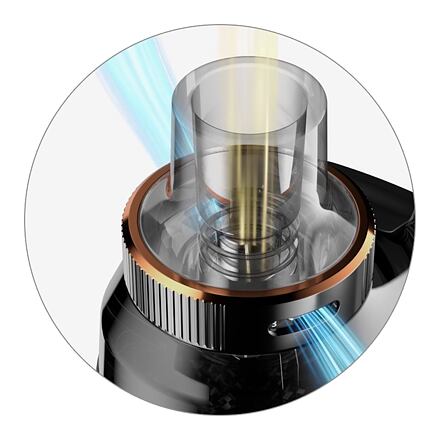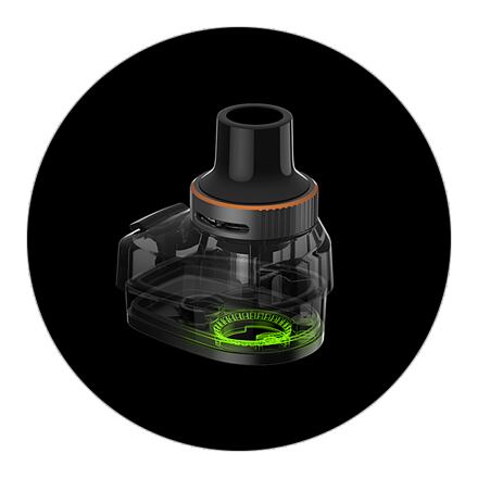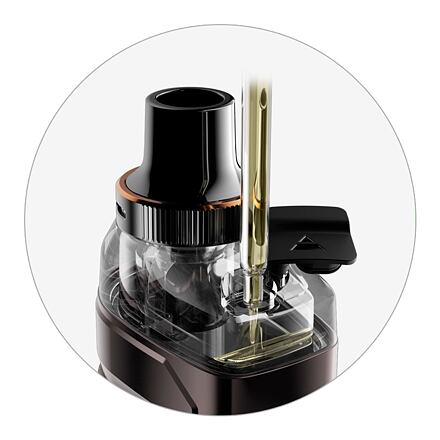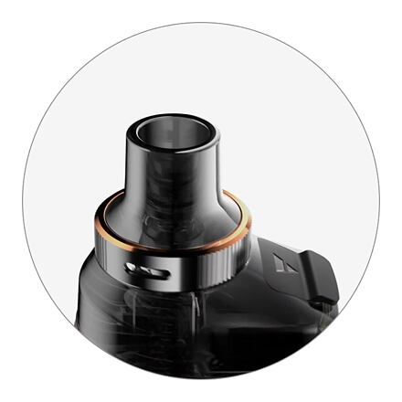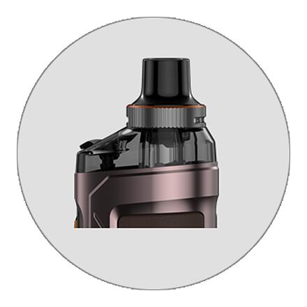 Ve vrchní části zařízení najdete novou cartridge Vaporesso Armour G Series s obrovským objemem. Hravě do ní doplníte až 5ml e-liquidu. S tímto slušným zásobníkem se můžete těšit na dlouhé hodiny intenzivního odpařování s minimem doplňování. A právě samotné plnění je vymyšleno u cartridge velmi intuitivně. Nachází se v horní části a tvoří ho pouze praktická silikonová záslepka. Do plné kapacity tak zvládnete cartridge naplnit čistě a rychle, doslova za pár vteřin.
