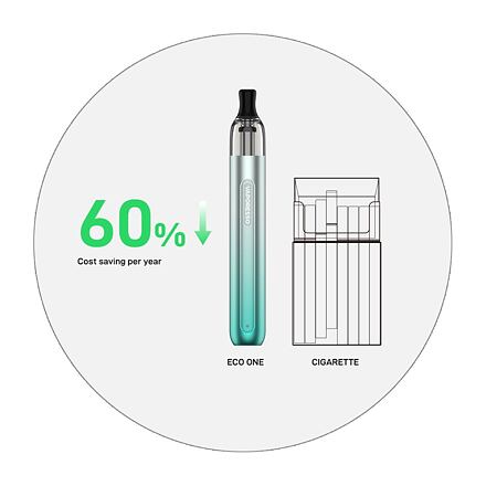 Používání modelu Vaporesso ECO ONE při celoročním používání šetří vaši peněženku až o 60% proti užívání klasických cigaret. Snižte své výdaje na minimum a užívejte si vapování bez zbytečných starostí.
