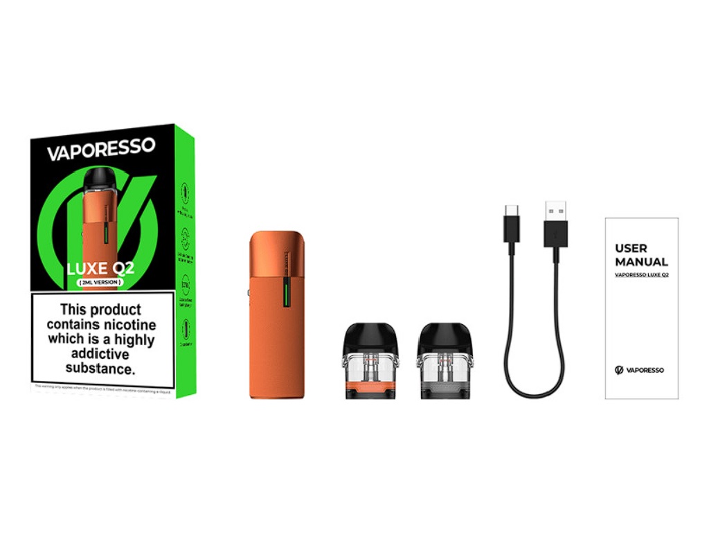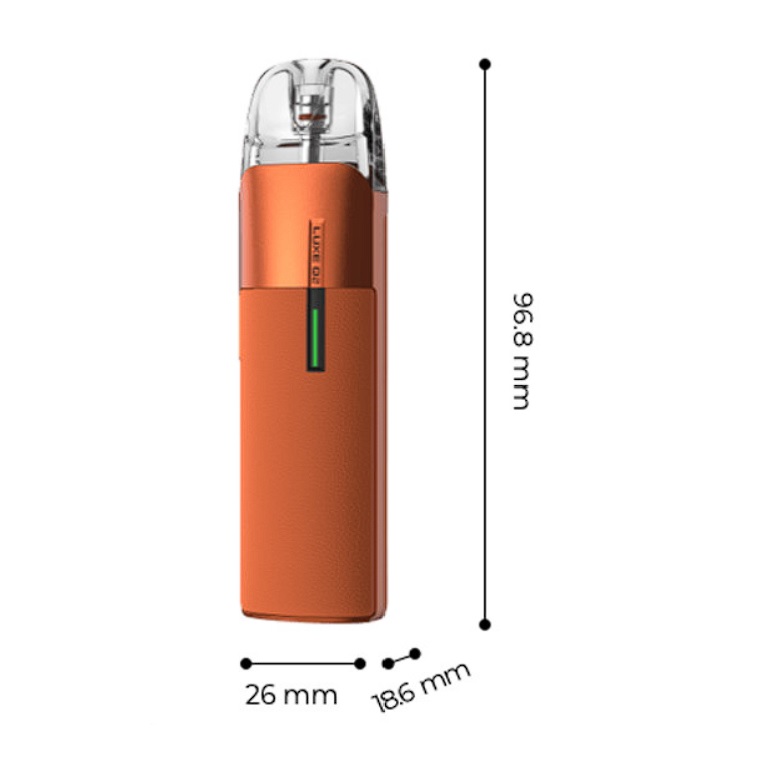 Druhá generace populární e-cigarety Vaporesso LUXE Q se představuje ve velkém stylu. Krásně zpracovaná konstrukce s koženým potahem, velká kapacita baterie, podpora rychlého nabíjení a vynikající podání chuti díky oblíbené technologii COREX. Vaporesso LUXE Q2 Pod Kit je nabušený pod systém pro každodenní využití. Na první pohled láká zejména na přepracovanou konstrukci s kůží na těle, která zajišťuje komfortní grip v dlani a pohodlné užívání. Rozměry těla činí jen 96.8 x 26 x 18.6 mm, e-cigaretu tak velice snadno schováte také do kapsy. Uvnitř těla na vás potom čeká integrovaná baterie s kapacitou 1000 mAh a podporou extrémně rychlého nabíjení prostřednictvím 2A portu USB-C. Do plné kapacity budete mít nabito už za 30 minut.