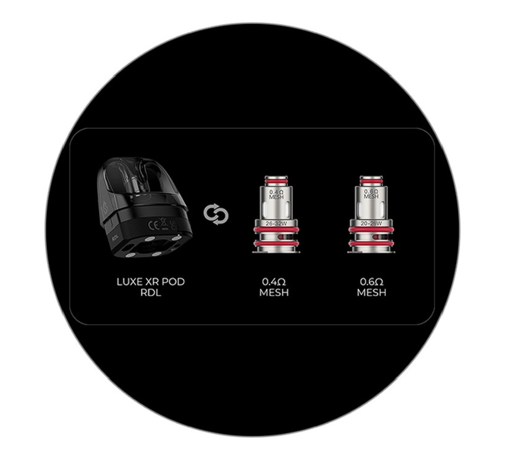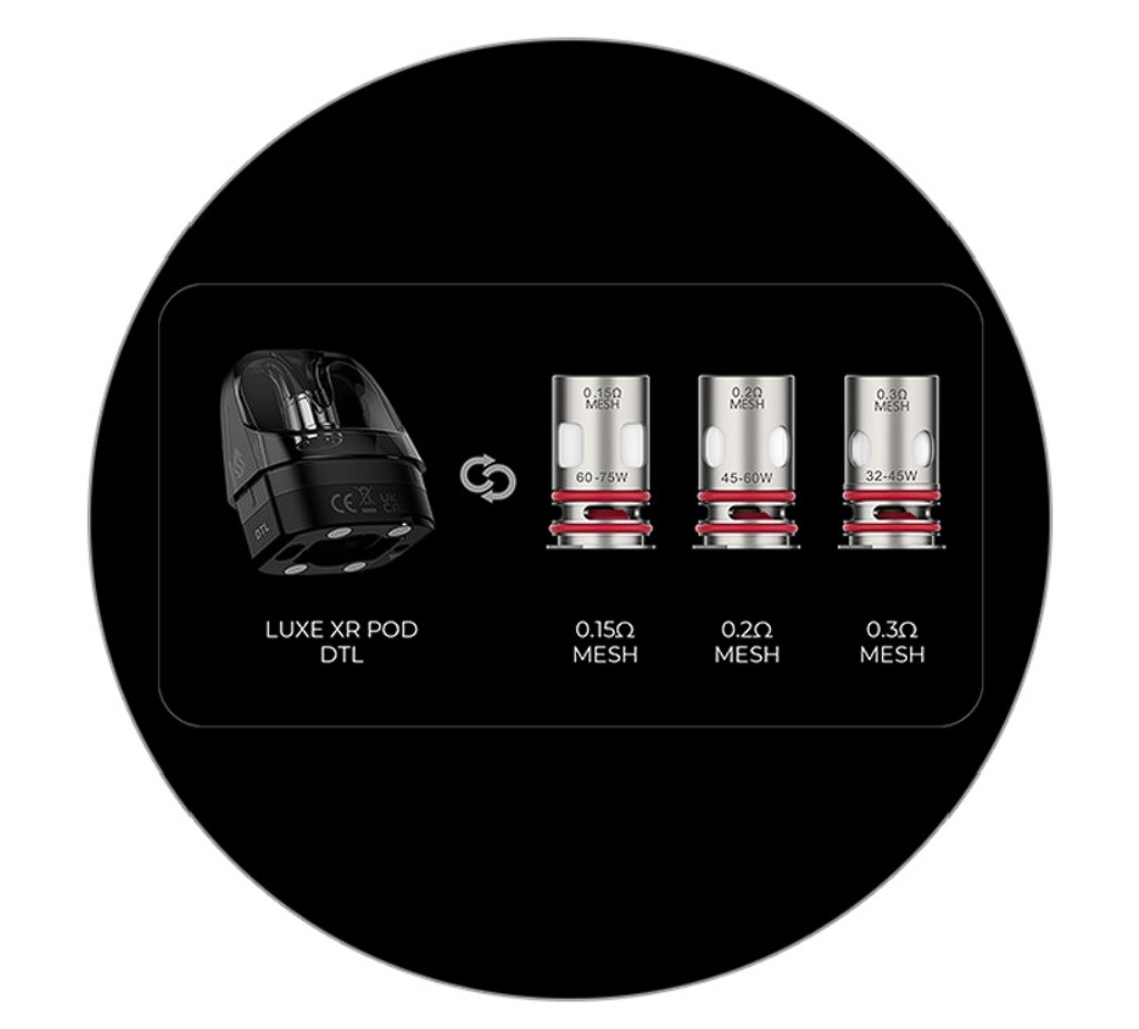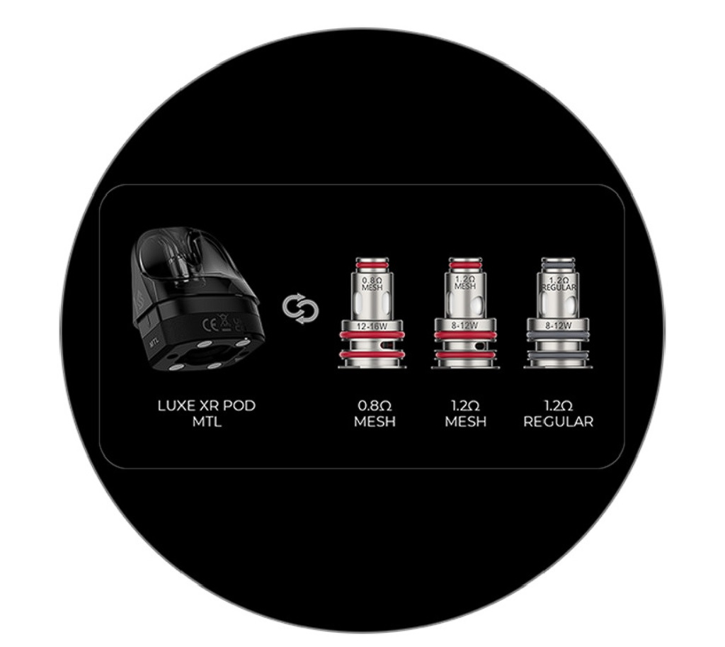 ![]() | Platforma GTX Cartridge XR Pod v základním balení jsou kompatibilní se žhavícími tělísky z platformy GTX. Tato platforma nabídne celou řadu různorodých odporů a typů žhavících tělísek. V základním balení na vás čeká tělísko GTX Mesh s odporem 0,2 ohm pro DTL cartridge a tělísko GTX Mesh s odporem 0,4 ohm pro RDL cartridge. Model LUXE XR MAX je zároveň zpětně kompatibilní také s cartridgemi LUXE X s integrovanými tělísky, které se dají pořídit samostatně. |