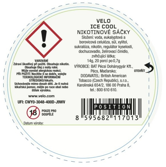 Charakteristika příchutě: Intenzivní ledově chladivá chuť varianty VELO Ice Cool. Je stejně mrazivá jako zimní den v Alpách se svěžími tóny máty a dalších bylin. Extra silné.