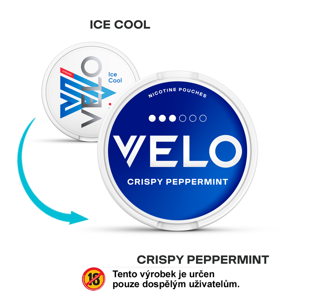 Nikotinové sáčky VELO Crispy Peppermint (dříve Ice Cool Strong) – to je zcela nová alternativa ke klasickému tabáku, která dodá všechny účinky nikotinu kdykoliv a kdekoliv!