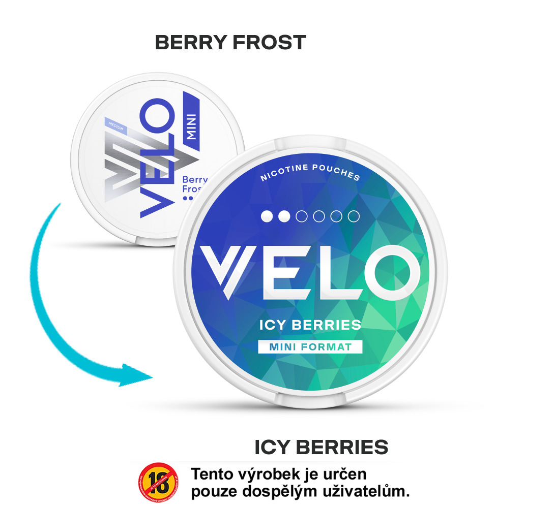 Nikotinové sáčky VELO ICY BERRIES – to je zcela nová alternativa ke klasickému tabáku, která dodá všechny účinky nikotinu kdykoliv a kdekoliv! Nová verze VELO Mini přináší o 30% menší rozměr než standardní sáček, díky čemuž se vejde pohodlně pod ret.