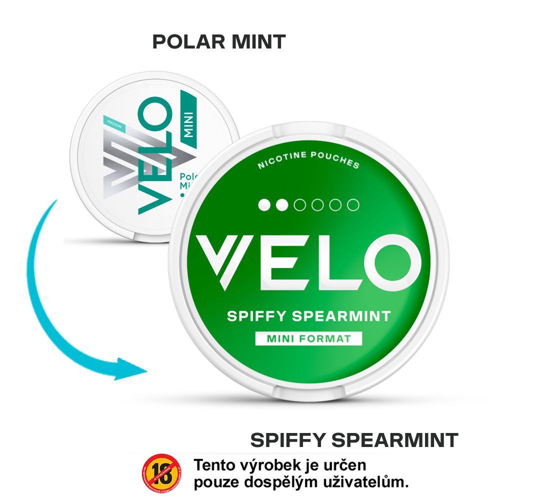 Nikotinové sáčky VELO Spiffy Spearmint – to je zcela nová alternativa ke klasickému tabáku, která dodá všechny účinky nikotinu kdykoliv a kdekoliv! Nová verze VELO Mini přináší o 30% menší rozměr než standardní sáček, díky čemuž se vejde pohodlně pod ret.