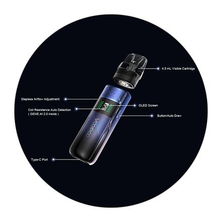 V jádru e-cigarety na vás čeká integrovaná baterie s ohromující kapacitou 1800 mAh, díky které si budete moci užívat intenzivní mnohahodinový vaping bez potřeby dalšího dobíjení. K velké kapacitě baterie nesmí chybět také výkonný dobíjecí port, ten se nachází ve spodní části a nabídne podporu nabíjení s parametry 5V a 2A.
