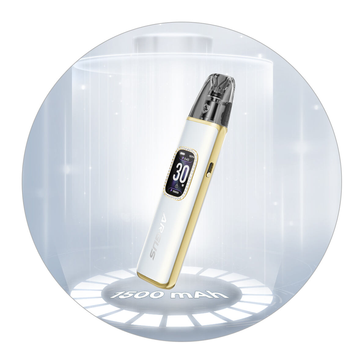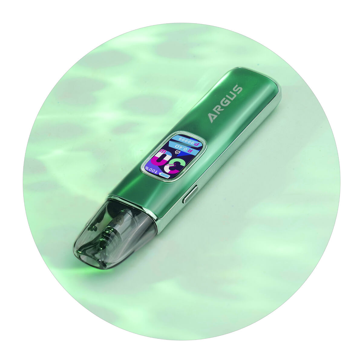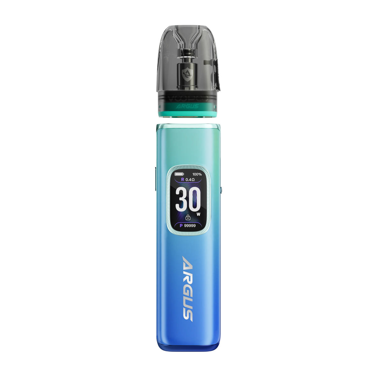 V přední části zdobí e-cigaretu Argus G3 obrovský 0.96″ TFT displej v celobarevném provedení. Displej je hlavní dominantou celé e-cigarety, přičemž vás bude neustále informovat o všem důležitém, co budete během potahování potřebovat. Zobrazuje tak stav baterie, odpor připojené cartridge, aktuálně zvolený výkon, zámek e-cigarety nebo počet potahů. Obrovskou výhodou je také funkce vypnutí displeje během používání, která slouží pro výraznější úsporu baterie při provozu. Displej si tak můžete kdykoliv jednoduše vypnout a přitom nadále vapovat.
