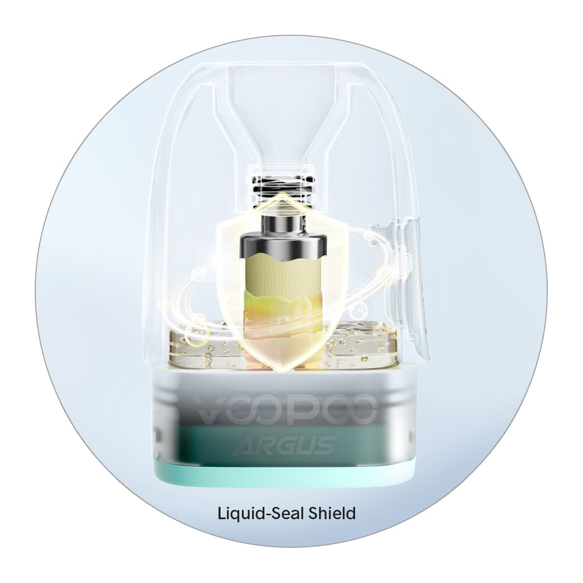 Cartridge VooPoo Argus Pod Top Fill V2 přichází s technologií iCOSM Code 2.0, v jejich centru se nachází moderní široké Mega-Core jádro a speciální izolační štít (Liquid-Seal Shield) pro efektivní a rovnoměrné zásobení vaty e-liquidem. Tento štít dokáže rovnoměrně nasát e-liquidem až 99% povrchu vaty uvnitř jádra. Mesh pletivo je potom obaleno inovativní a patentovanou zlatou vatou (Golden Cotton), která maximalizuje absorpci a prodlužuje životnost cartridge díky odolnosti vůči teplotě na spirálce až do 260 °C.