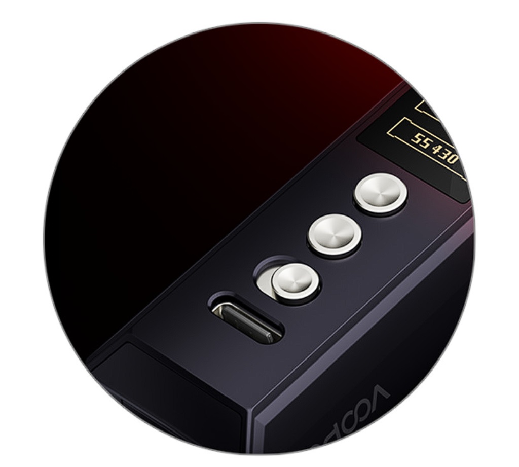 ![]() | Jednobaterkový provoz V těle modu najdete slot pro vložení jedné externí baterie. Mod pracuje s bateriemi typu 21700, případně s klasickými bateriemi 18650 po použití adaptéru. Díky slotu pro externí baterii nabídne mod svobodu při výběru vlastního specifického článku pro co nejlepší výsledky při vapování. Samozřejmostí je potom také podpora rychlého nabíjení baterie přímo uvnitř modu, stačí jen připojit USB-C kabel a začít dobíjet proudem až 2.5 A. |
