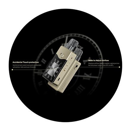 V boční části se nachází jednoduchý manuální posuvník, který slouží pro efektivní uzamčení nebo odemčení celé e-cigarety. Po uvedení zařízení do uzamčeného stavu není možné regulovat výstupní výkon ani spínat žhavení. Můžete tak svou e-cigaretu bezpečně přenášet v kapse nebo cestovním zavazadle a nemusíte se obávat nechtěného přenastavení výkonu nebo nechtěného sepnutí žhavení a poškození žhavící hlavy.