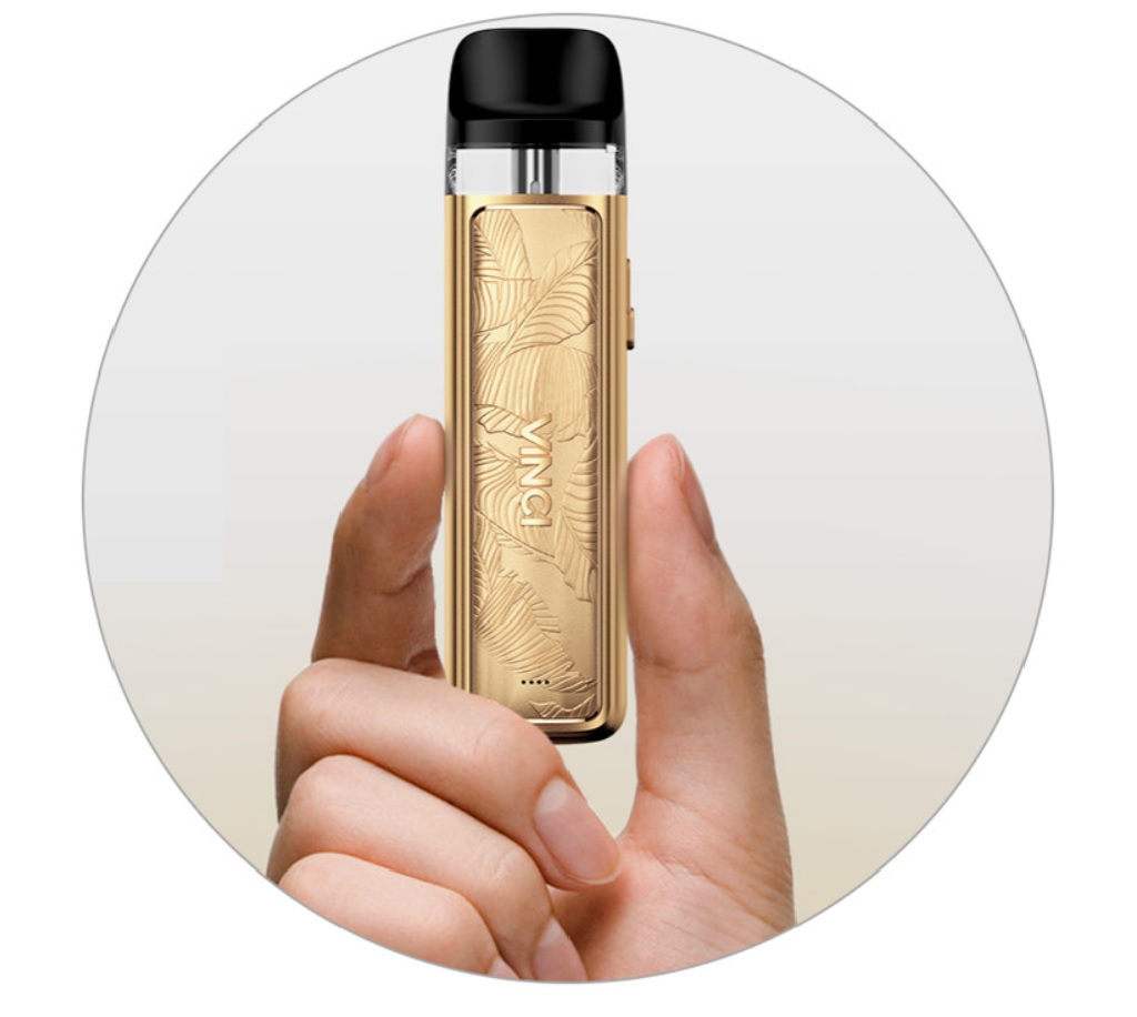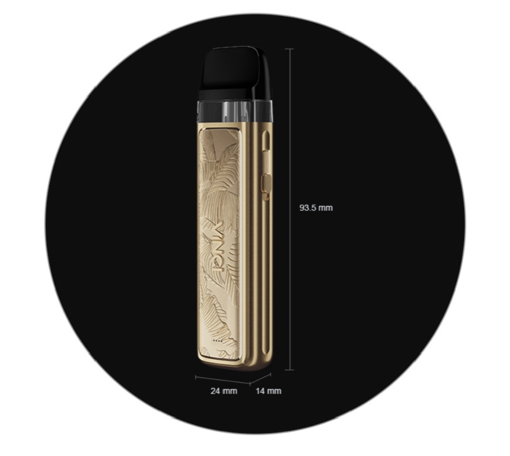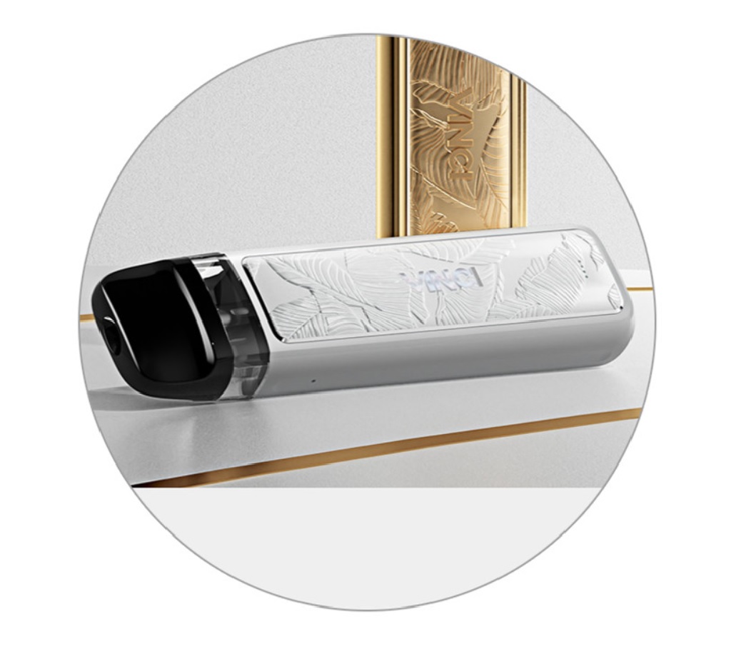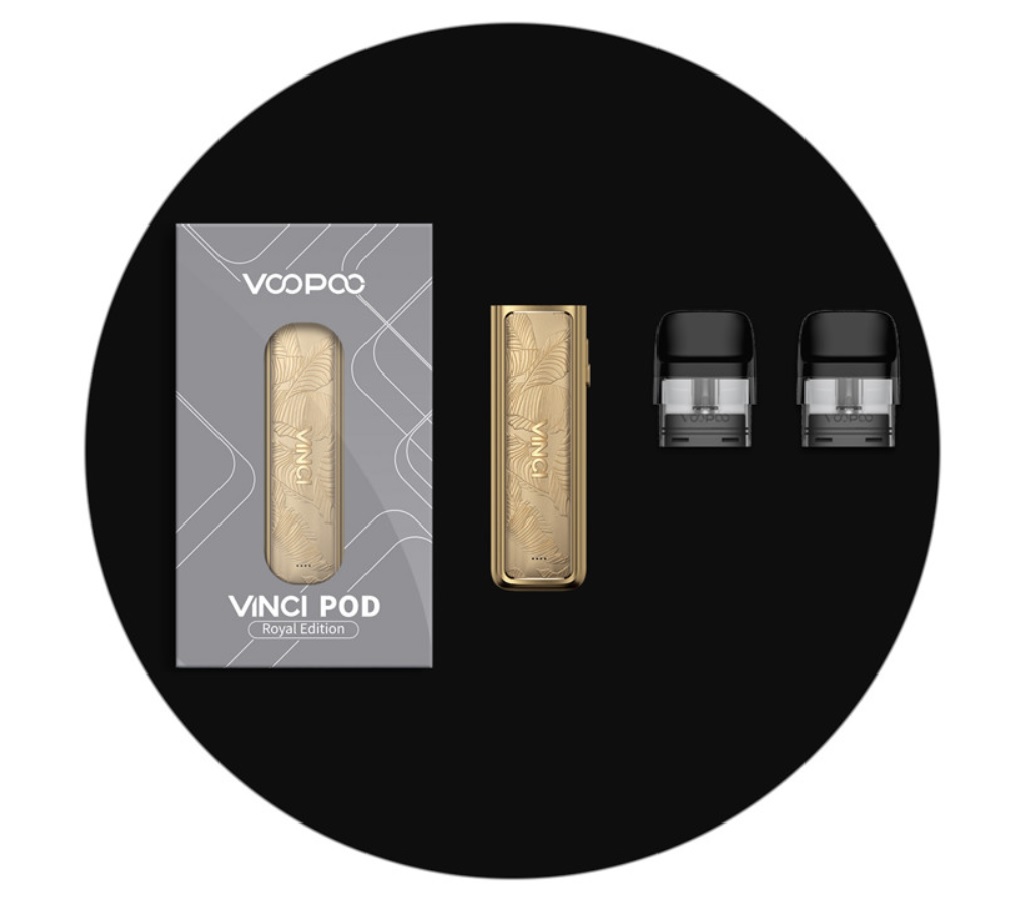 VooPoo Vinci Pod Kit Royal Edition je luxusní edicí populární e-cigarety Vinci Pod. Díky specifickému výrobnímu procesu a luxusnímu zpracování se jedná o e-cigaretu pro náročné uživatele, nebo zkrátka pro ty, co si potrpí na prémiový design produktu. Designéři ze společnosti VooPoo zachytili při návrhu doslova každý malý detail a výsledný design přivedli k dokonalosti. Samotná výroba se skládá ze dvanácti výrobních procesů a 68 navazujících kroků. Povrchová úprava a barevná zpracování jsou tak ukázkou opravdového mistrovství. E-cigareta nabídne všechny výhody, které znáte již z původní verze Vinci Pod. Nesmí chybět kapesní rozměry 93,5 x 24 x 14 mm v čele se skvělou ergonomií. Uvnitř těla se nachází integrovaná baterie se solidní kapacitou 800 mAh pro dlouhé hodiny nerušeného vapování. V případě potřeby stačí kdykoliv připojit USB-C kabel a baterii můžete opětovně pohodlně a rychle dobít.