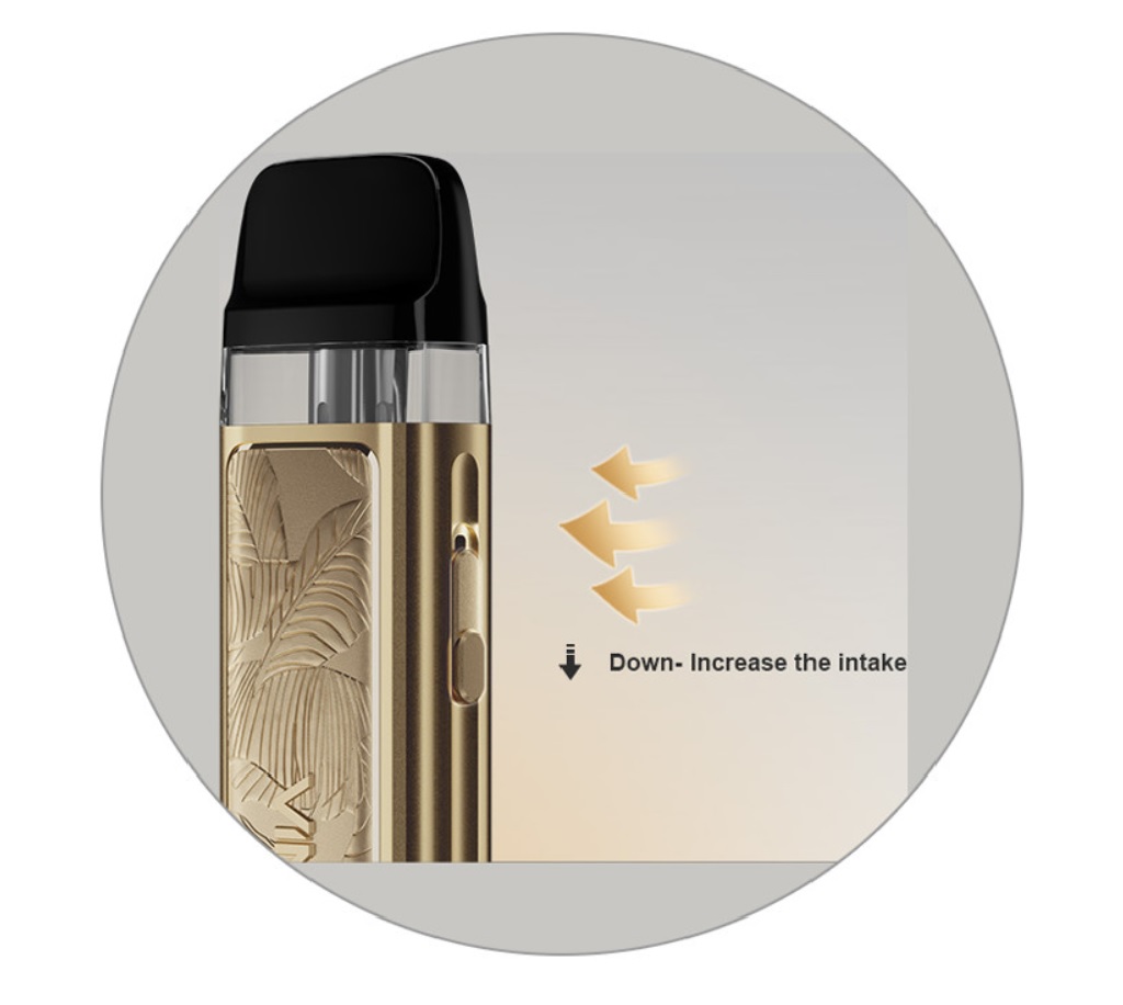 ![]() | Plynulá regulace airflow Chcete si vyladit tuhost potahu přesně svým představám a dosud vám to nebylo umožněno? S příchodem Vinci Pod Royal Edition se situace mění. V boční části se nachází praktický posuvný systém airflow, jehož posouváním nahoru, nebo dolů ovládáte šířku otvoru pro přívod vzduchu. Můžete si tak potah utáhnout na úroveň běžných cigaret, nebo si můžete dle potřeby airflow otevřít, abyste získali větší množství páry a vzdušnější potah. Volba je ve vaších rukách. |