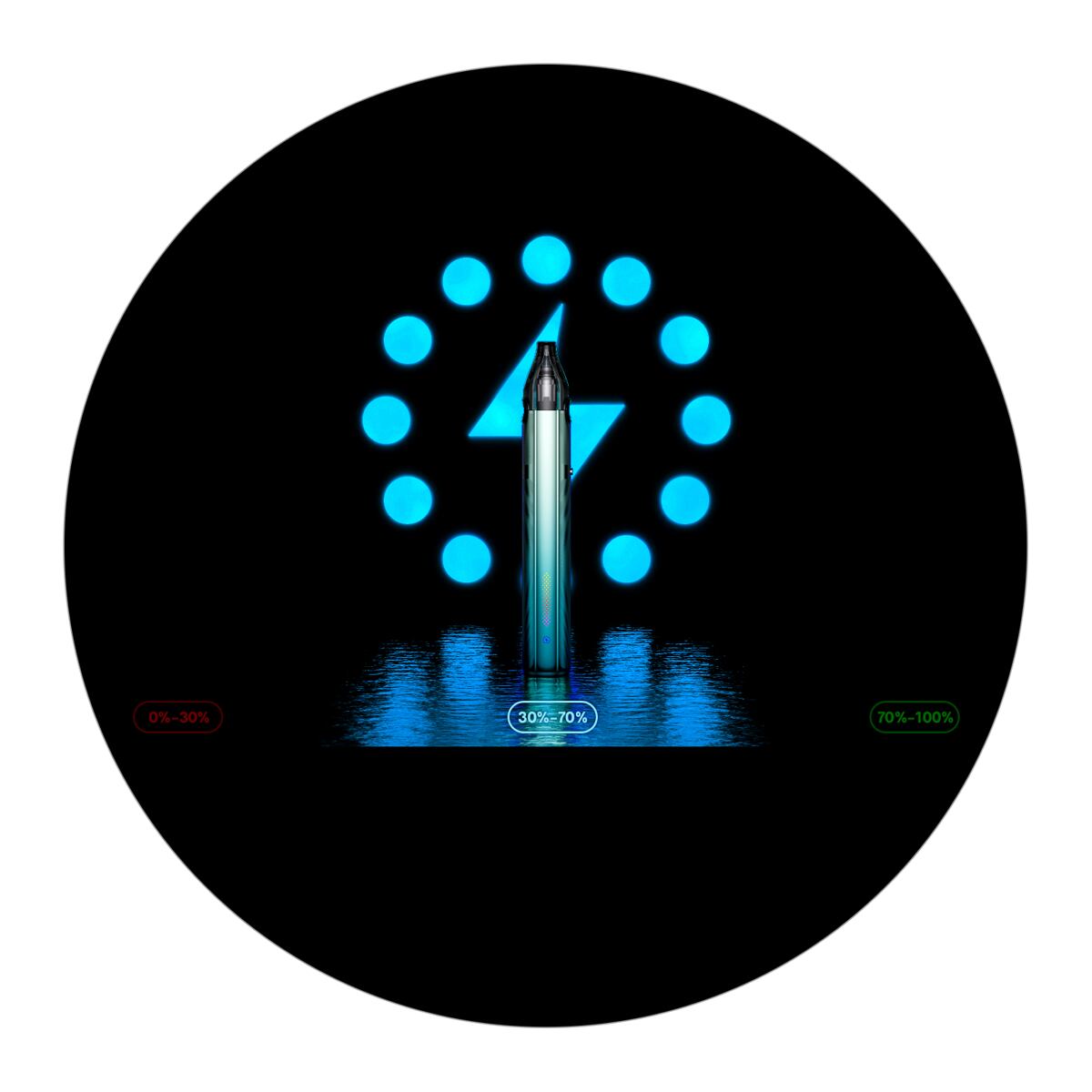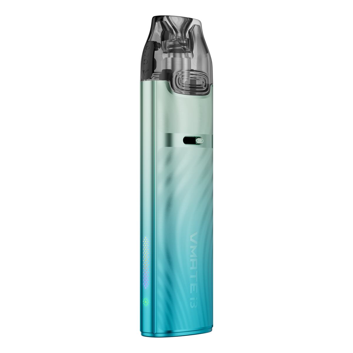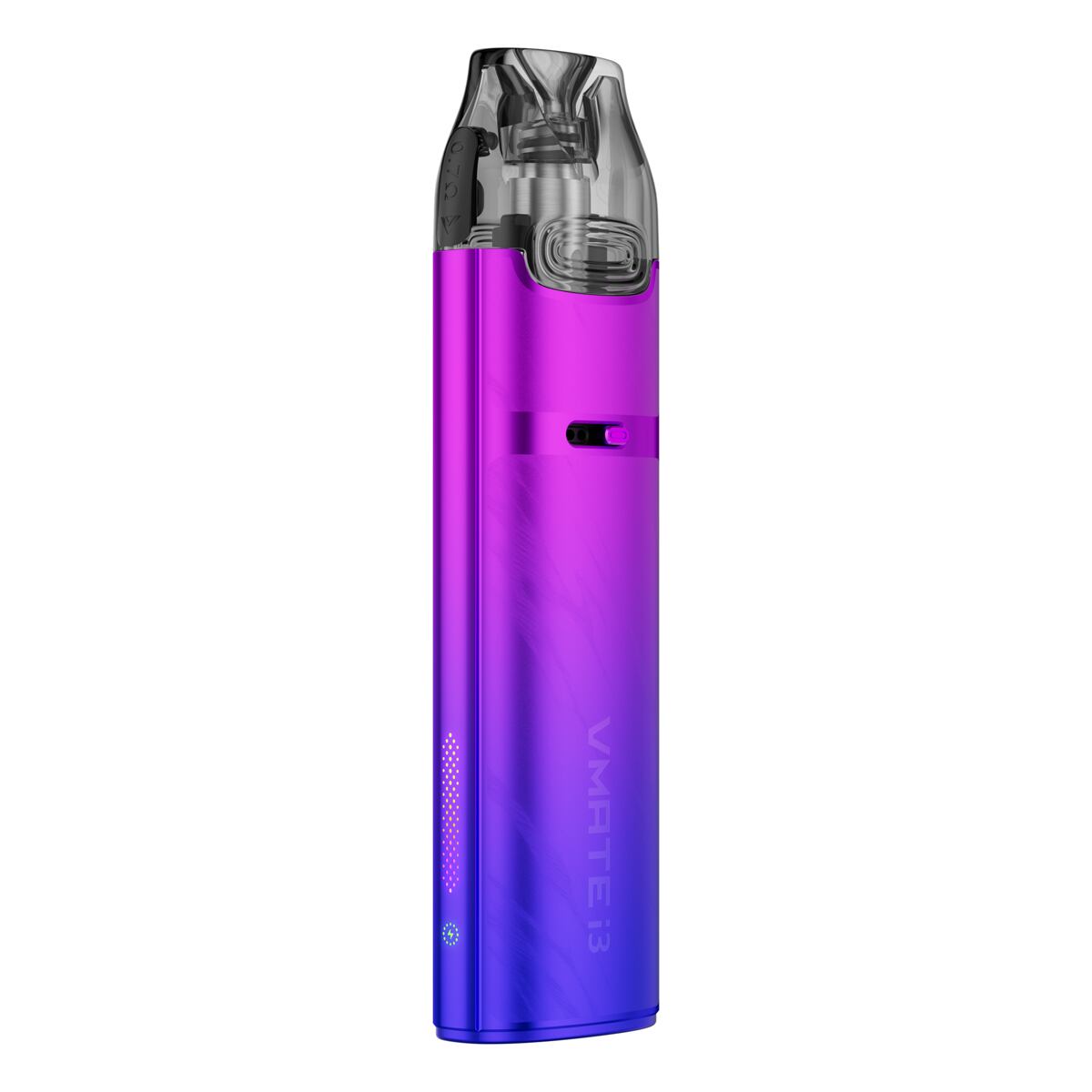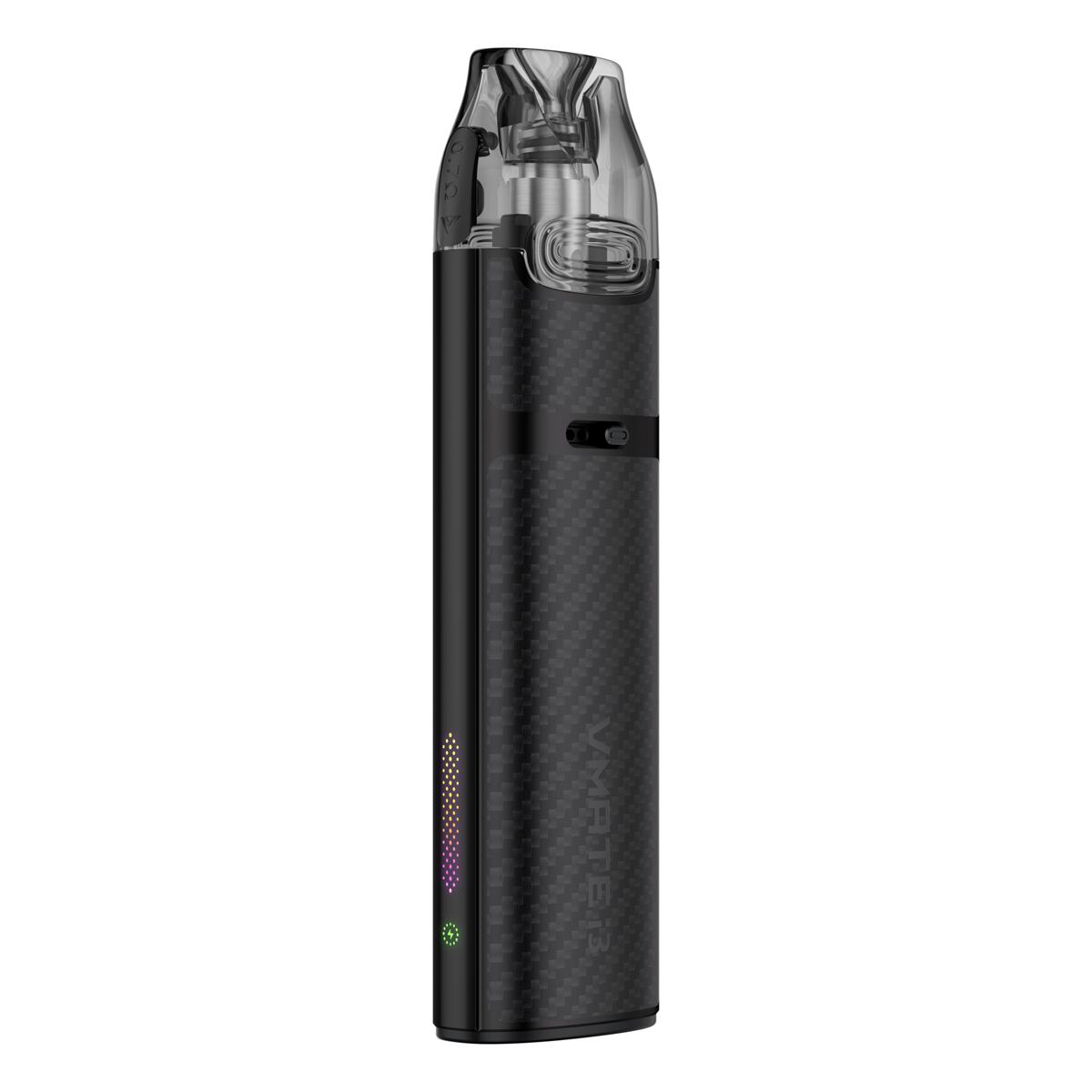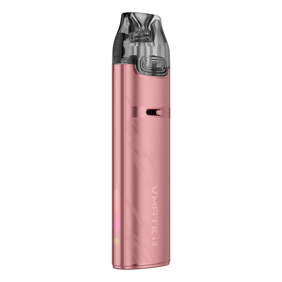 Novinkou je u modelu Vmate i3 zmodernizování LED indikační diody doplněné o stylová neonová světla. Tento světelný proužek se nachází v boční části. Samotný indikátor stavu baterie potom nabídne hned tři barvy dle procentuální úrovně nabití baterie, díky zelené, červené a modré indikaci tak budete mít vždy neustálý přehled, na kolik procent je vaše e-cigareta nabitá. Neunikne vám proto už žádná informace.