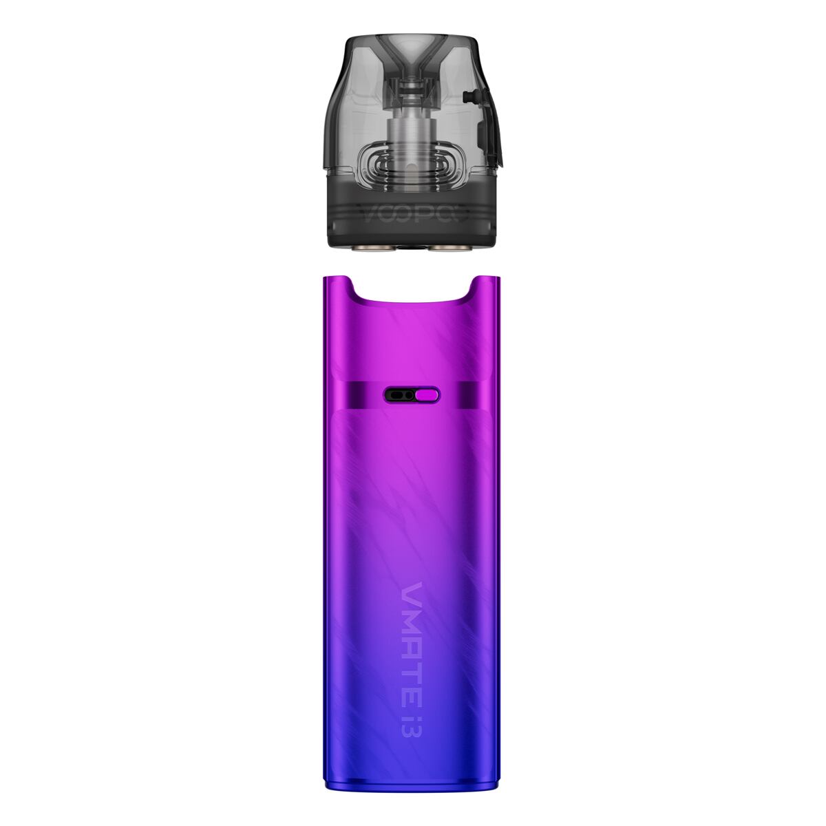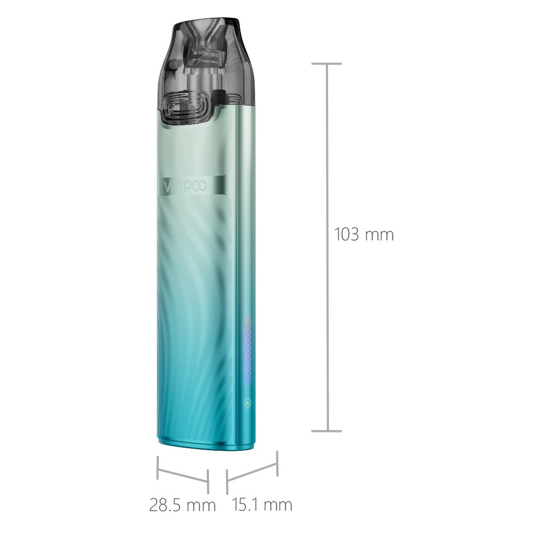 VooPoo Vmate i3 Pod Kit je elegantní a nádherně zpracovaná e-cigareta pyšnící se abnormálně lehkou konstrukcí. Celé tělo je vyrobeno z odlehčené hliníkové slitiny a celková hmotnost činí pouhých 49.8 g. Během přenášení v kapse ji tak ani neucítíte a velice pohodlně se drží také v ústech a v dlani během vapování. Celkové rozměry se zastavily na krásných 103 x 28.5 x 15.1 mm. Po stránce barevných zpracování výrobce sází na jistotu a opět uvádí na trh své oblíbené barevné varianty, mezi nimiž nechybí například populární Neon nebo tradiční Black.