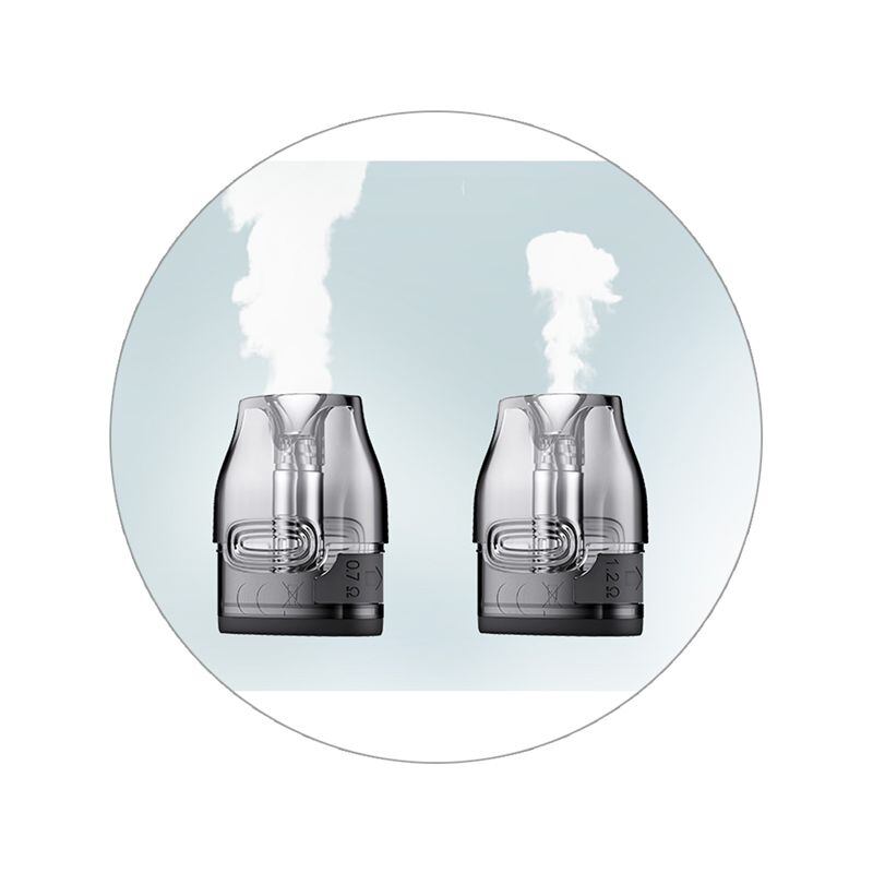 Cartridge ve vrchní části e-cigarety se může pyšnit velkým objemem 3ml. Jedná se o dostatečnou kapacitu pro dlouhé hodiny klasického šlukování s minimem opětovného doplňování. Nesmí chybět ani praktické boční plnění se silikonovou záslepkou, do plné kapacity tak zvládnete cartridge doplnit za pár vteřin.