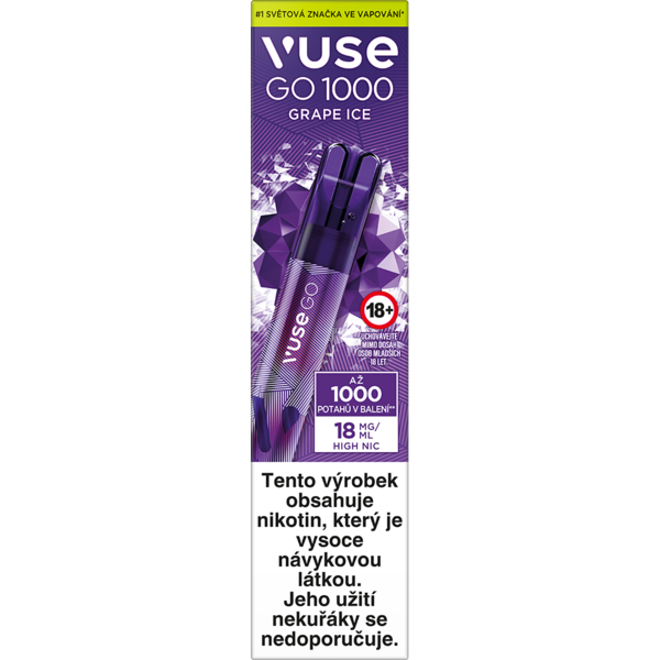 - Vuse GO 1000 je jednorázové zařízení obsahující nevyměnitelnou lithium-iontovou polymerovou baterii.