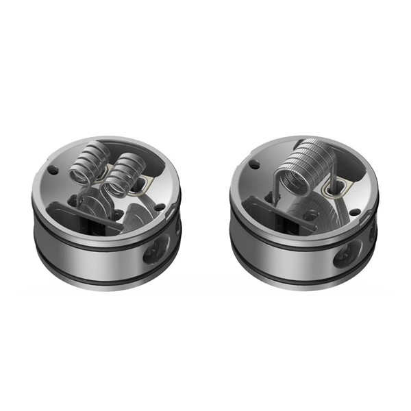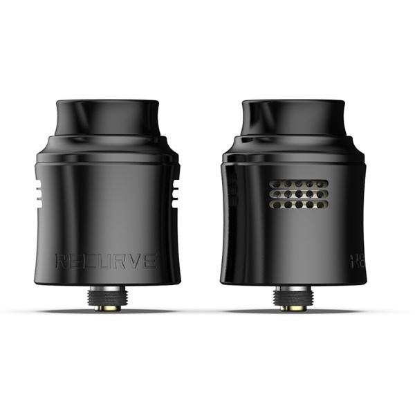 Recurve V2 nabízí postless základnu, kterou můžete osadit buď na single coil s průměrem 5 mm/3 mm, nebo dual coil s průměry 3 mm. Součástí balení můžete najít dvě 3 mm Framed Staple Clapton spirálky s odporem 0,33 Ohm a jednu Dual Core Fused Clapton spirálku s odporem 0,65 Ohm. Můžete si tak rovnou vyzkoušet oba styly základny. Tank zároveň nabízí dva různé vzduchové adaptéry podle množství použitých spirálek, které zjemňují páru perfektně podtrhují chuť vašeho e-liquidu. Boční přísun vzduchu může být precizně korigován ve třech stupních obsahujících 5 vzduchových otvorů každý, takže si airflow můžete nastavit přesně dle svých představ.